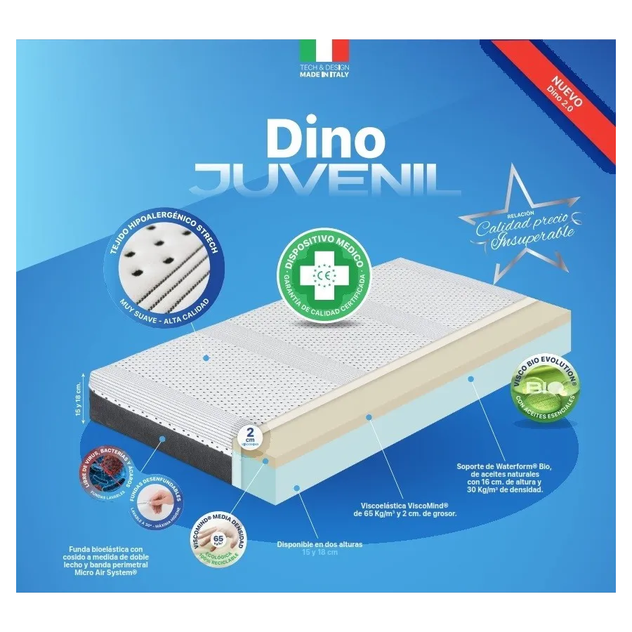 Colchón Plus Salute modelo Dino juvenil, dispositivo médico con certificación sanitaria