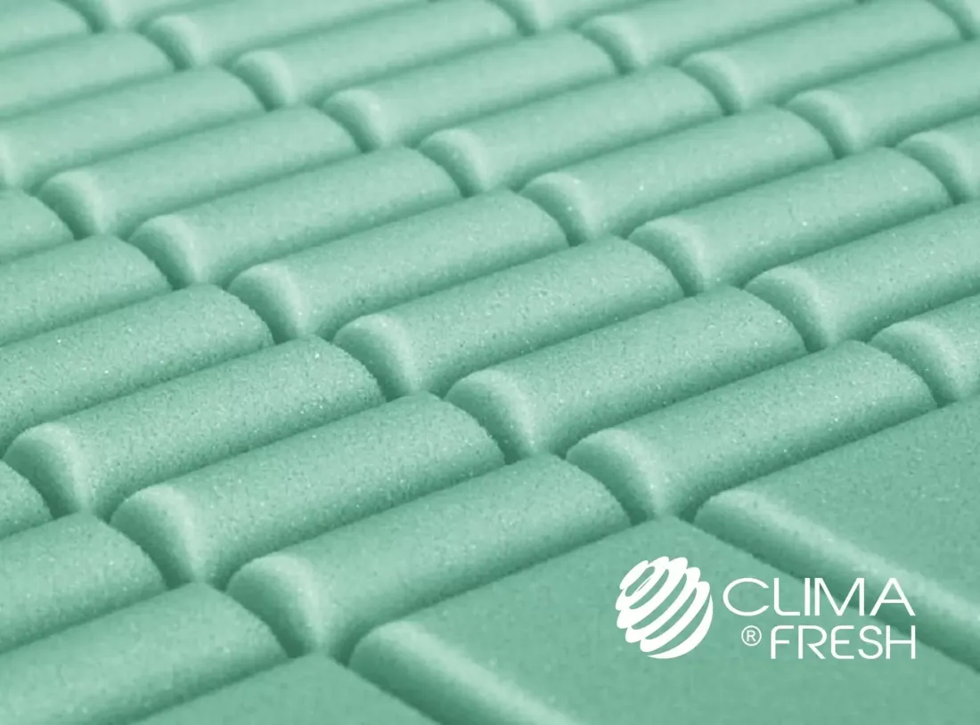 ClimaFresh® está formado por viscoelástica de intercambio térmico (Phase Change Material) que le otorga una capacidad extraordinaria de mantenerse fresco, una insuperable adaptación, buena elasticidad y perfecta transpirabilidad.