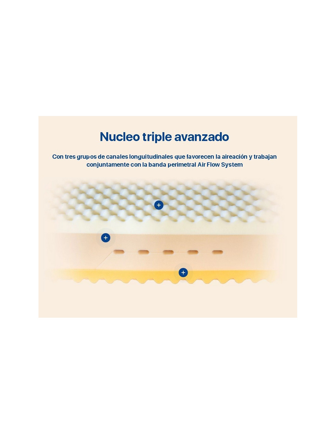 El núcleo dispone de un perfilado especial con función masaje que mejora la micro circulación sanguínea. Multiperfilada con 5 zonas de descanso para un soporte equilibrado y máxima adaptabilidad. Tecnología respetuosa con el medio ambiente que se caracteriza por ser 100% respetuosa con el medio ambiente y por tener 0% de emisiones nocivas.