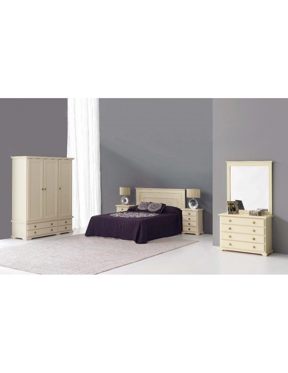 Este dormitorio clásico contemporáneo está disponible en dos medidas de ancho de cama e incluye los siguientes muebles (medidas en alto x largo x fondo):