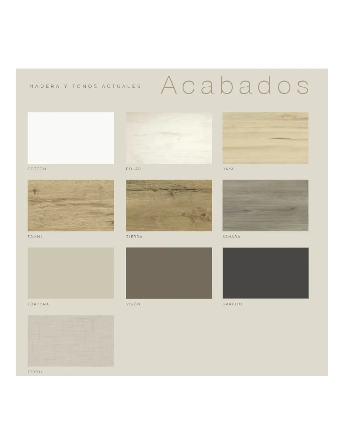- Colores base: para aplicar obligatoriamente en los cascos-estructuras de los muebles, y de manera opcional en los frentes de cajón-puertas.