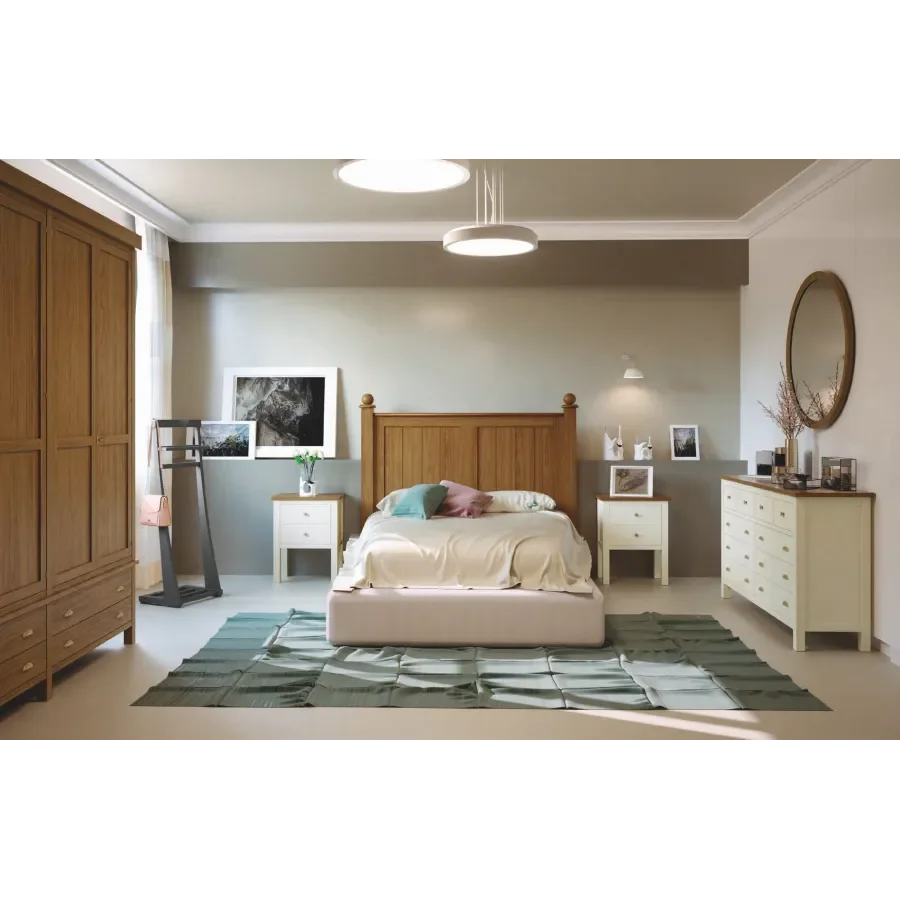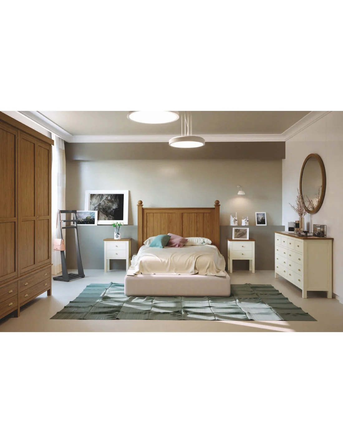 Este modelo de dormitorio de madera puede venir en varias terminaciones lacadas y barnizadas a su elección: