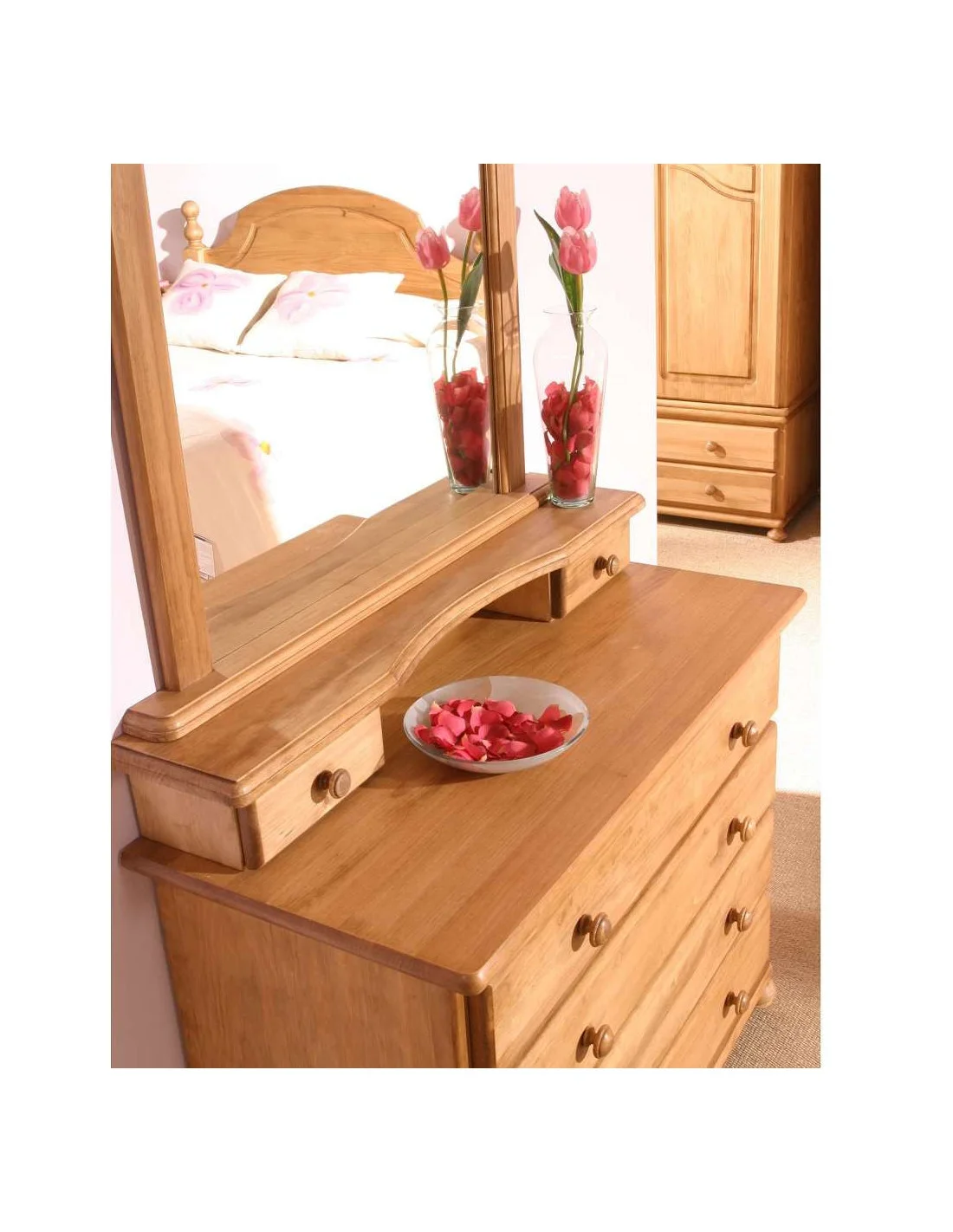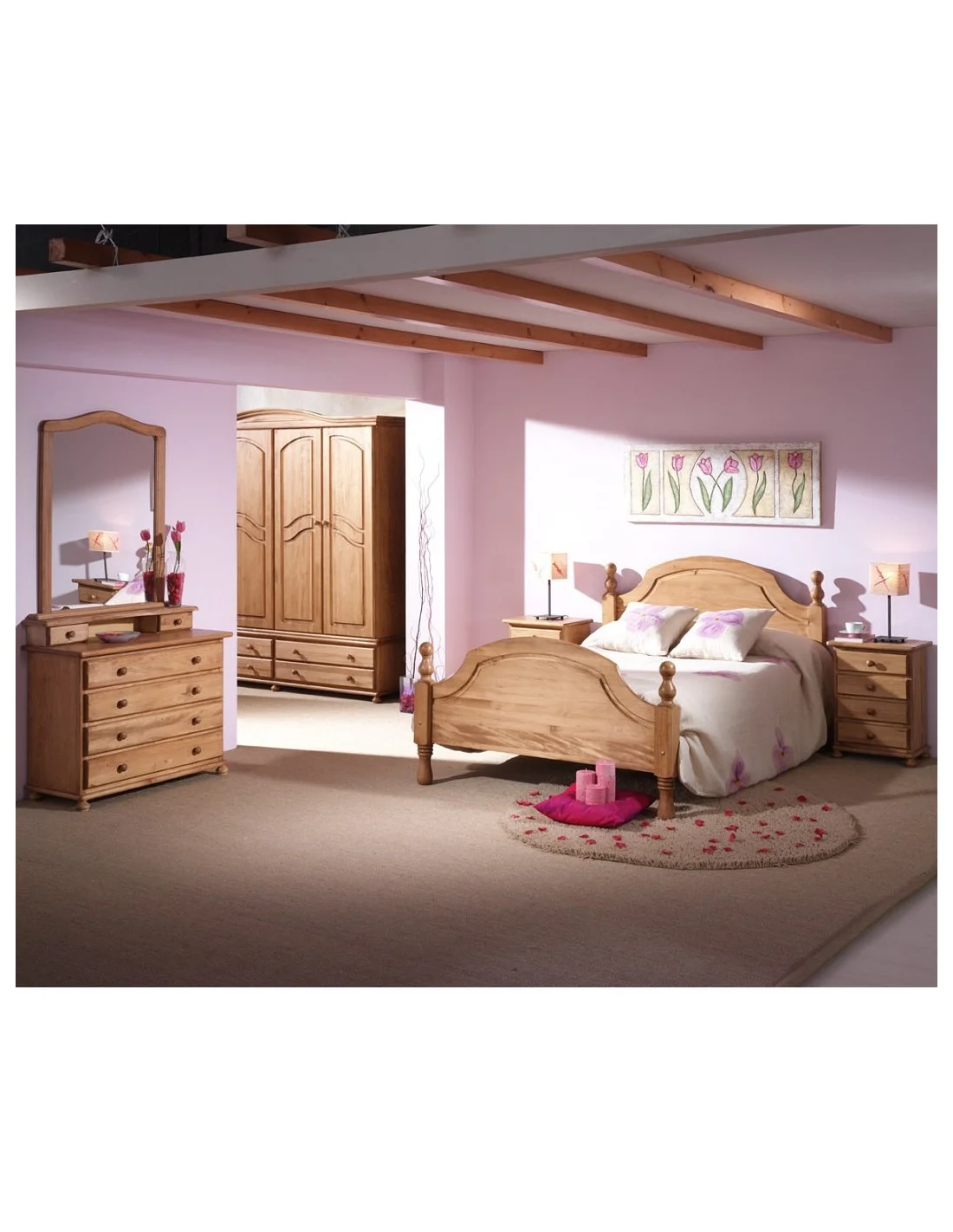 Dormitorio de estilo provenzal con armario fabricado en madera maciza de pino y de fabricación española.