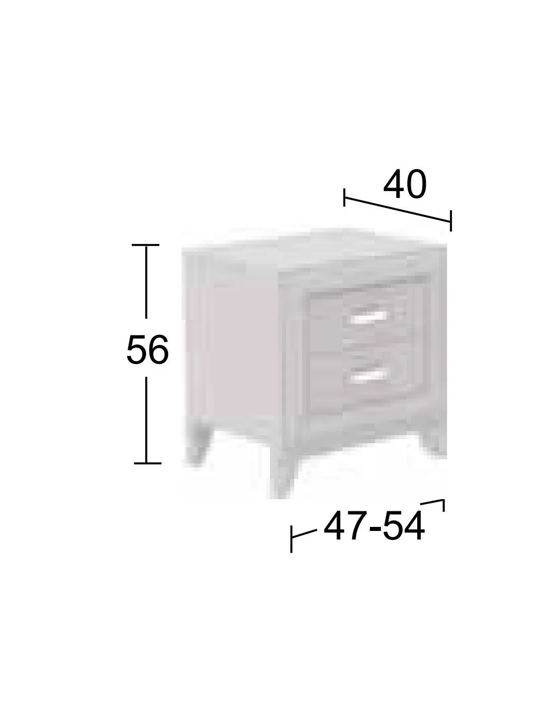 - Mesita dos cajones con patas macizas (2 unidades): 56 x 54 x 40 cm.
