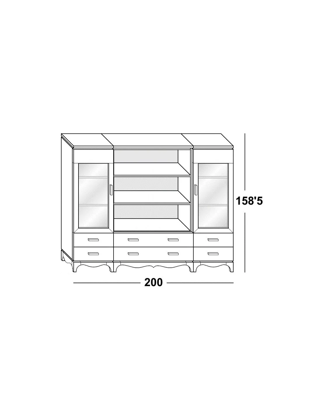 Este mueble librería para salón tiene las siguientes medidas (alto x largo x fondo en cm.): 193,5 x 200 x 45.