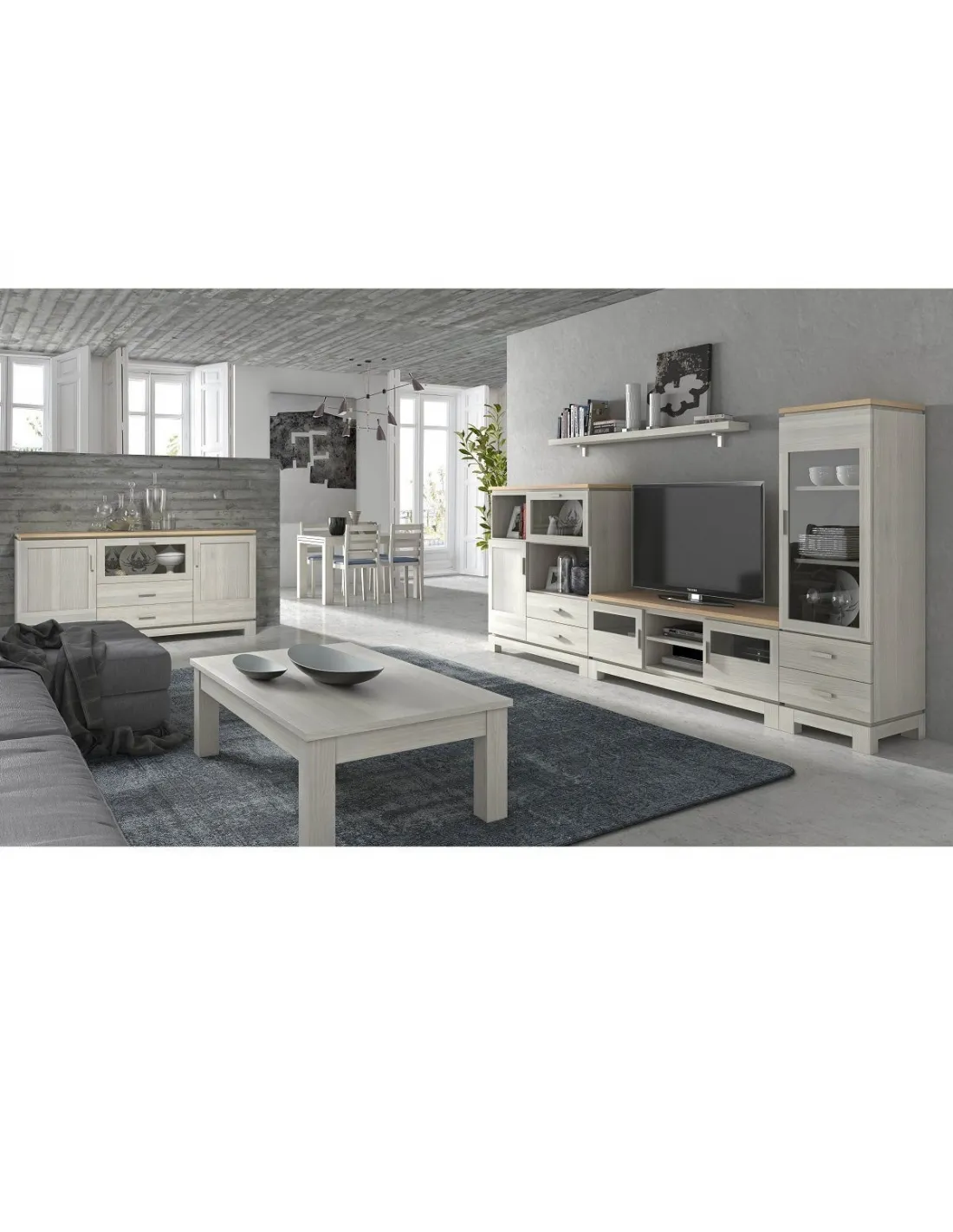 Composición de salón completa fabricado en madera maciza de pino de primera calidad