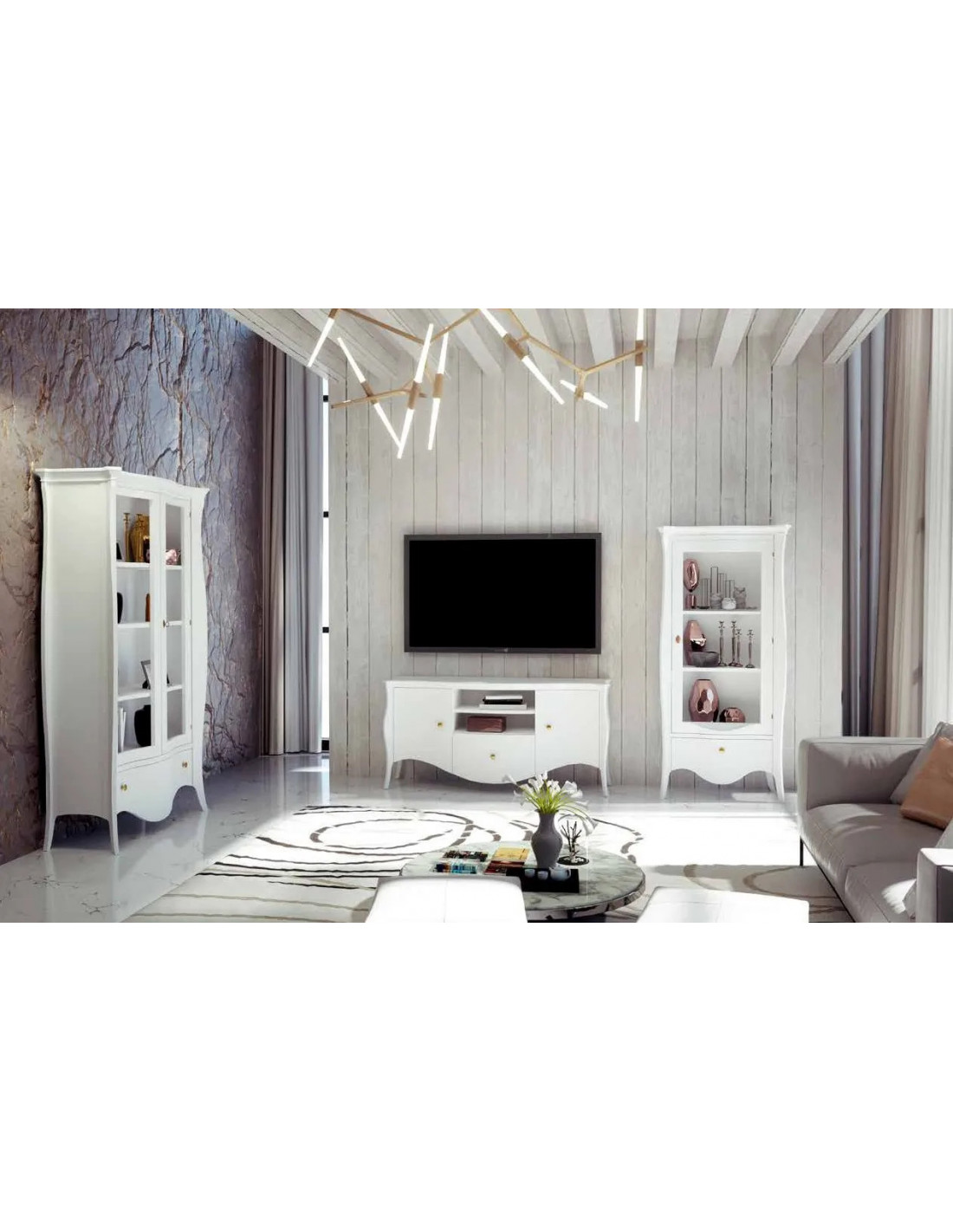 Mueble de diseño neocolonial fabricado en madera maciza y tablero chapado en madera de pino. De fabricación española, estos muebles están disponibles en terminaciones barnizadas y lacadas a elegir. Dentro de esta serie podrá encontrar otras piezas para combinar con estos productos.