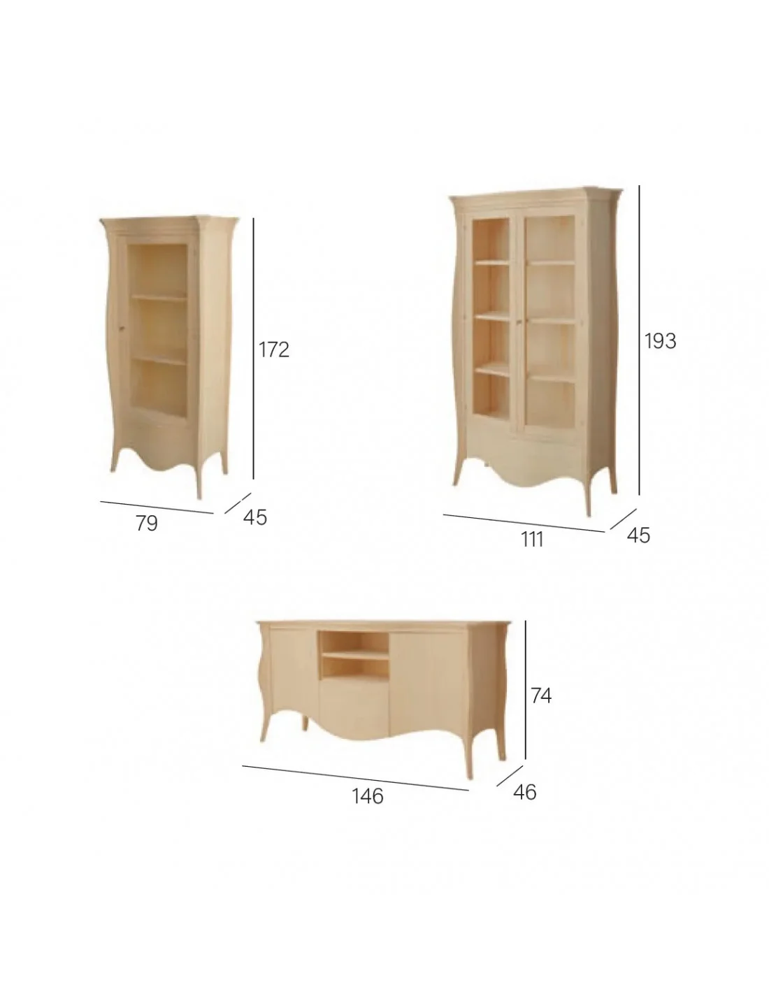 Mueble de diseño neocolonial fabricado en madera maciza y tablero chapado en madera de pino. De fabricación española, estos muebles están disponibles en terminaciones barnizadas y lacadas a elegir. Dentro de esta serie podrá encontrar otras piezas para combinar con estos productos.