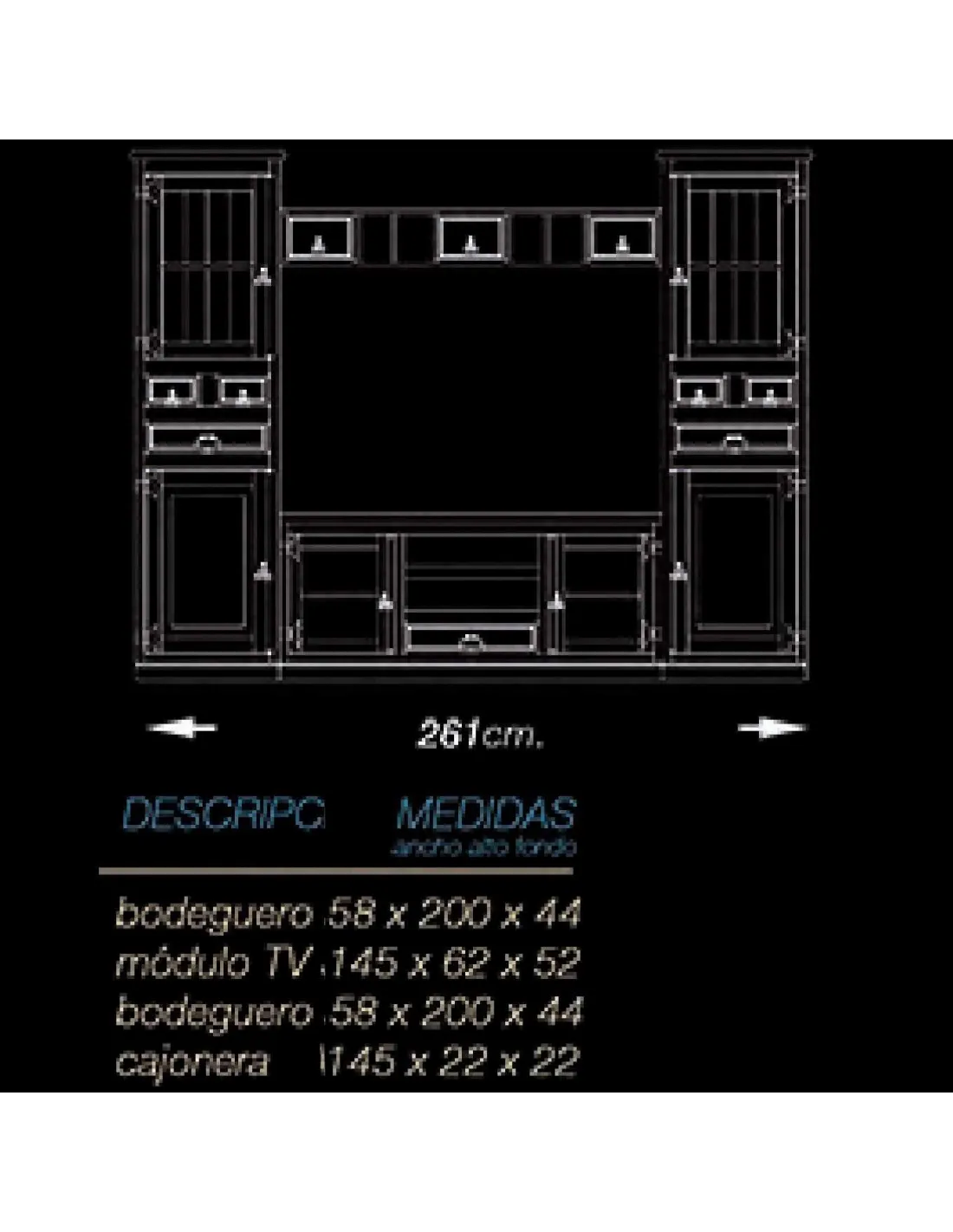 Este mueble de salón rústico mexicano 261cm. está compuesto por los siguientes módulos: