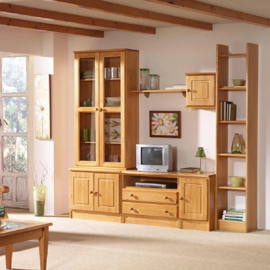 Mueble de salón modular de estilo provenzal en madera de pino de fabricación nacional
