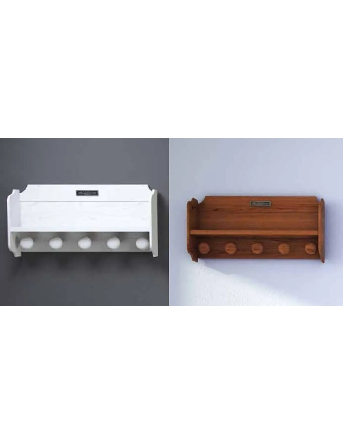Esta estantería de pared con pomos tiene unos acabados pulimentados y barnizados de primera calidad, con la posibilidad de elegir entre blanco decapado, nogal claro y nogal naútico, con los detalles del mueble y herrajes de latón pulido.