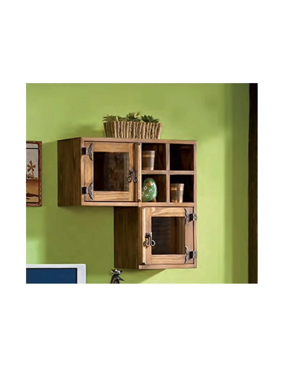Mueble con 2 puertas para pared en madera maciza de pino estilo mexicano.