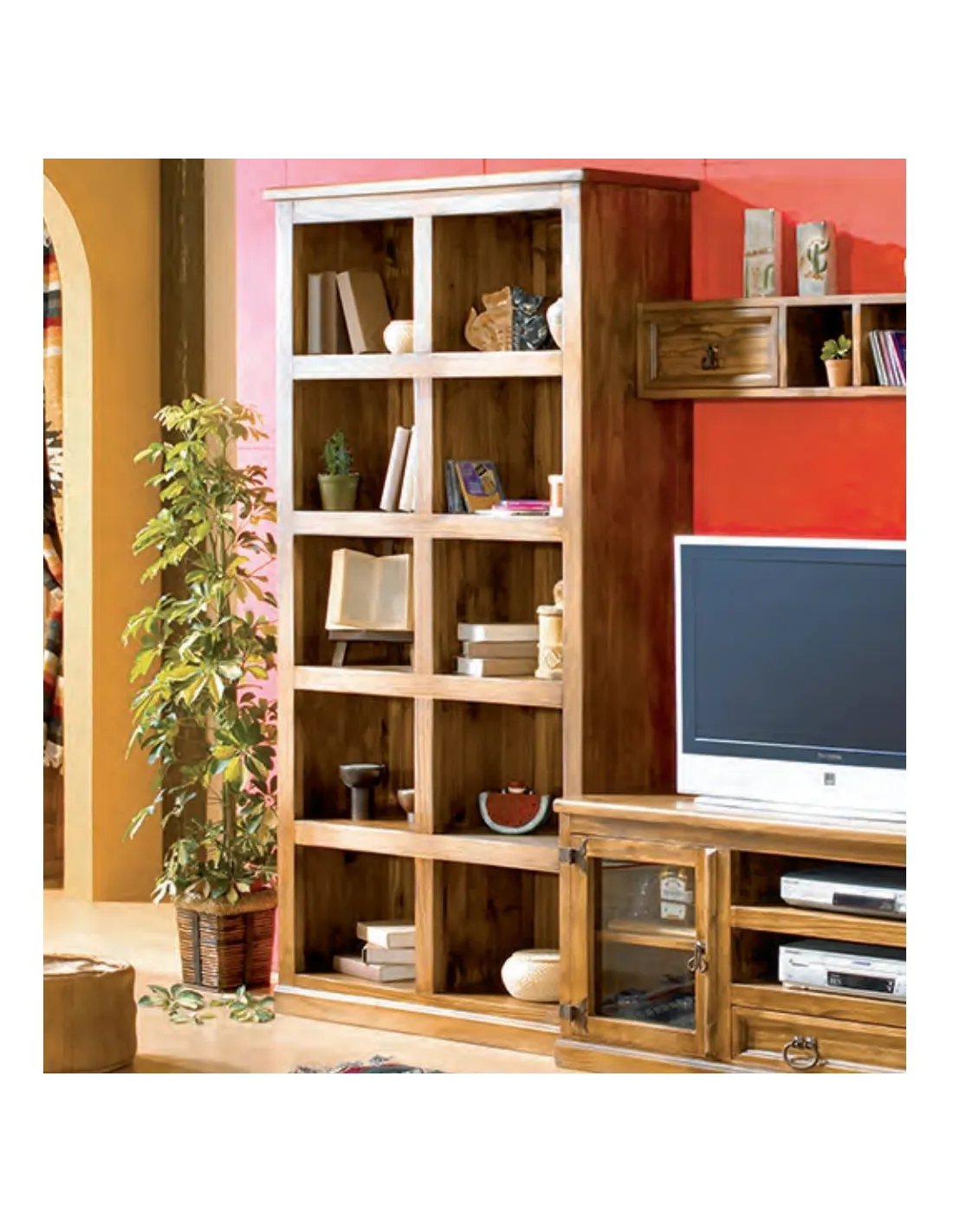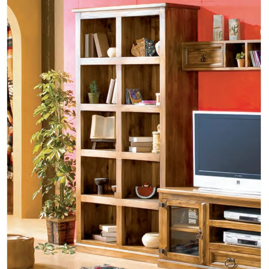 Mueble estantería de diez huecos en madera maciza de pino estilo mexicano.