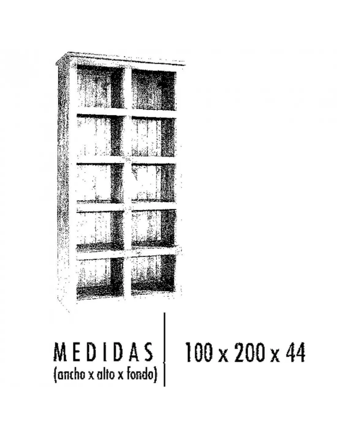 - Estantería rústica diez huecos: 100 x 200 x 44 cm.