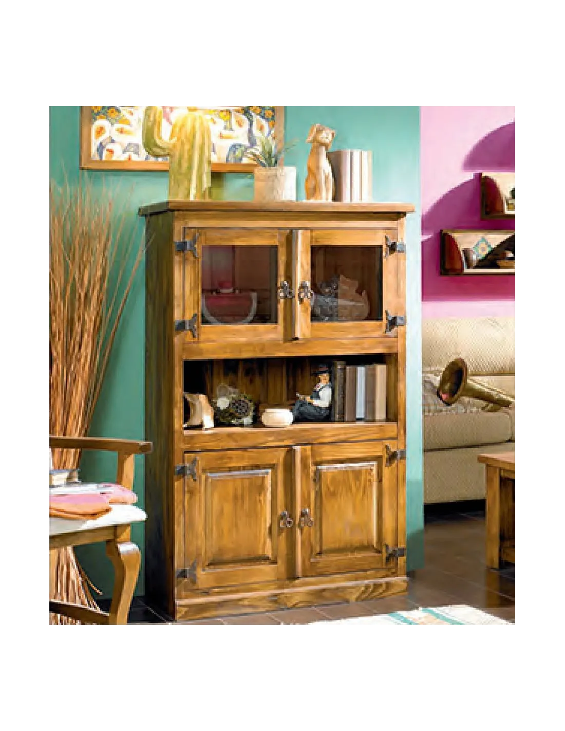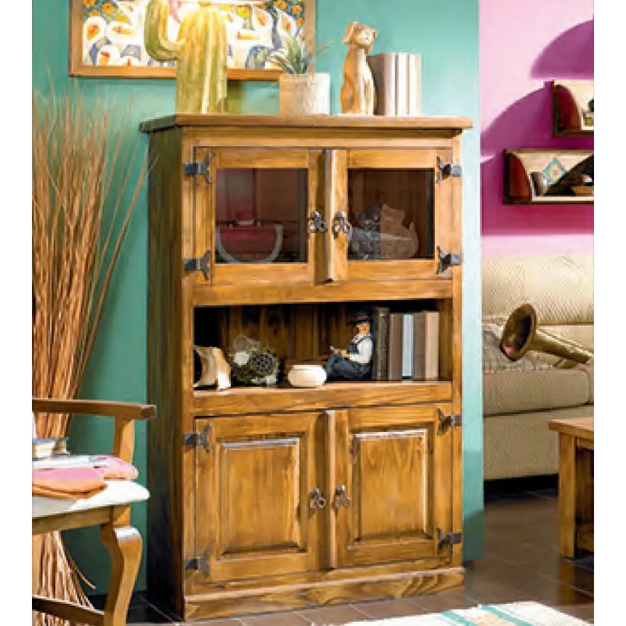 LIBRERO CUATRO PUERTAS RÚSTICO MEXICANO