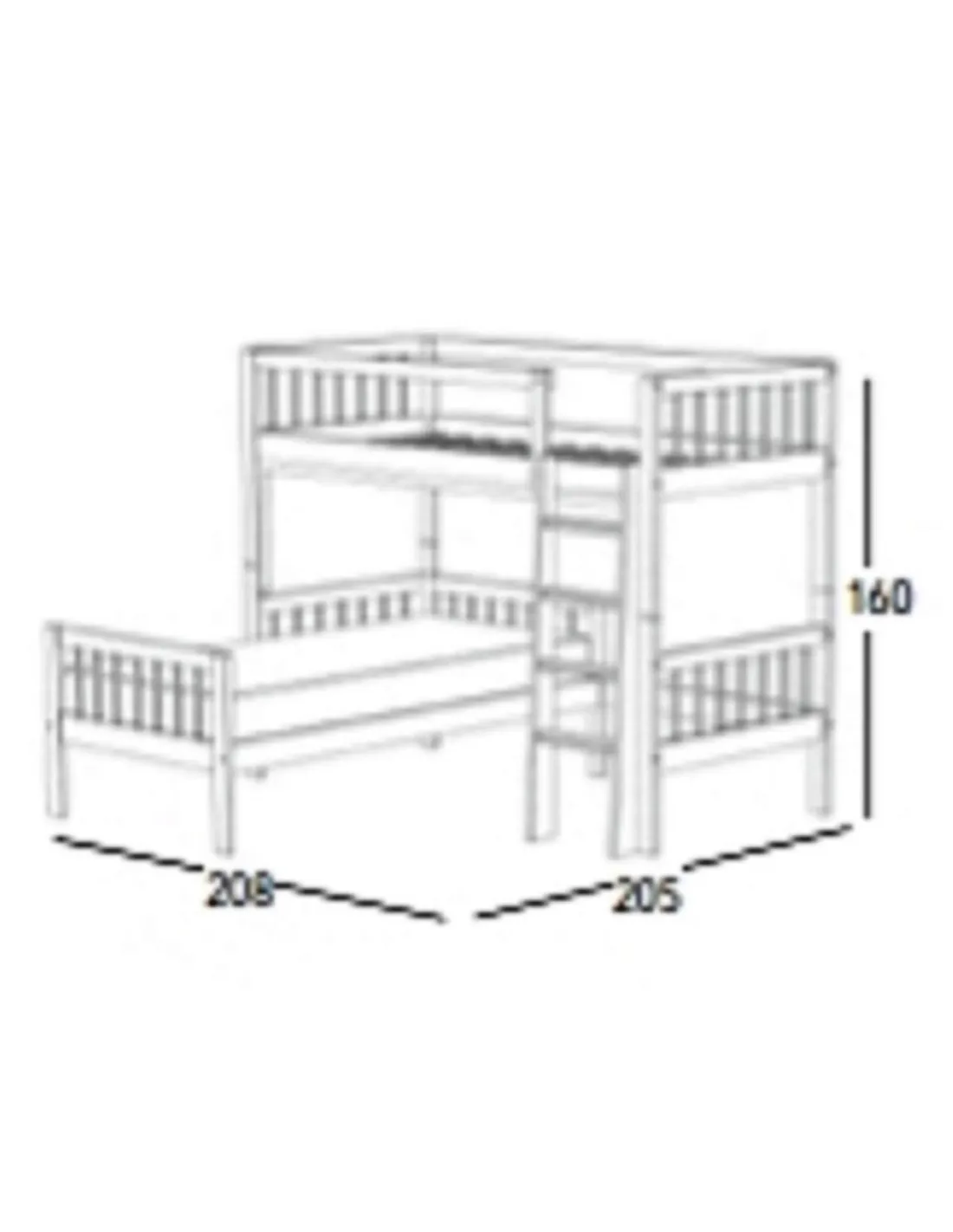- Fondo: 195 / 205 / 215 (para cama inferior de largo 180 / 190 / 200)