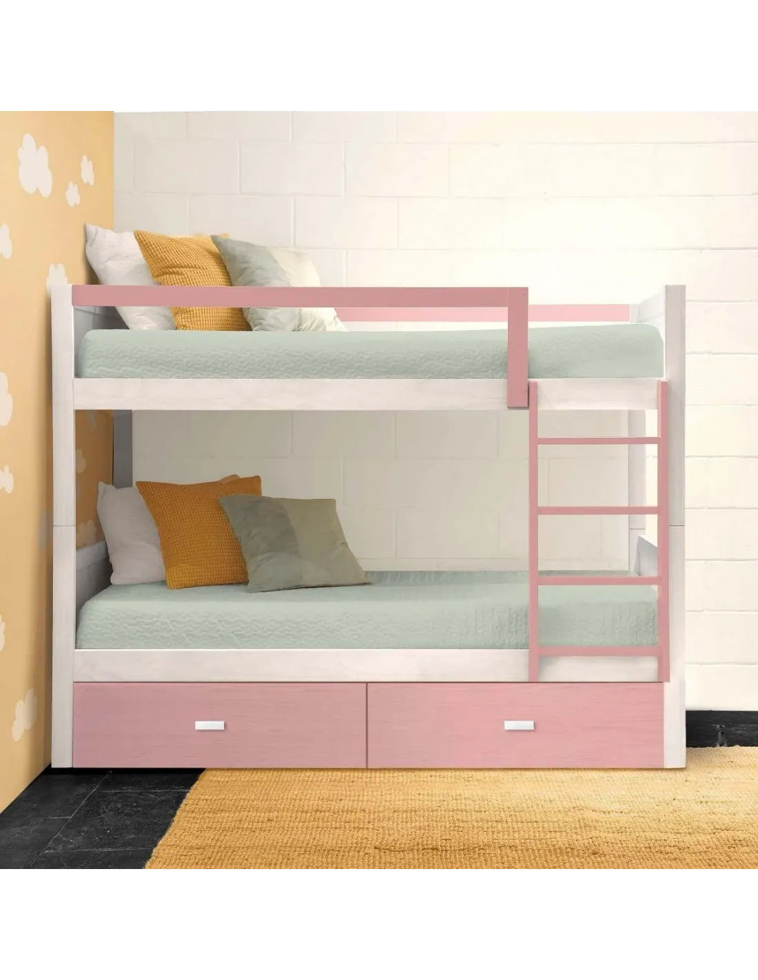 Esta litera madera Plafón 90 con cajones de guías se puede personalizar en base a cuatro series de colores con terminaciones barnizadas, lacadas, decapés y glaseados.
