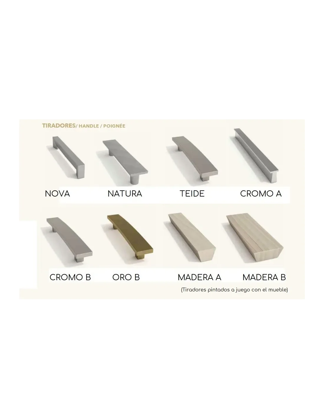 Cada uno de estos acabados se pueden aplicar al mueble, e igualmente se pueden combinar dos o más colores en la misma cama. Para elegir su combinación, primero seleccione las opciones grupo de color en los desplegables para saber el precio final del producto y, a continuación, escriba la combinación deseada en el recuadro destinado a ello y pulse el botón guardar antes de añadir al carrito.