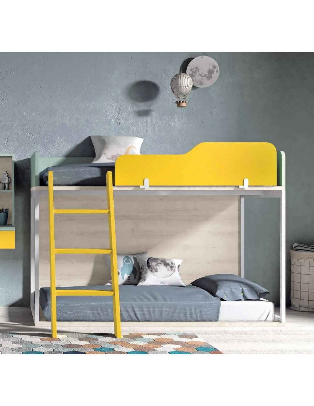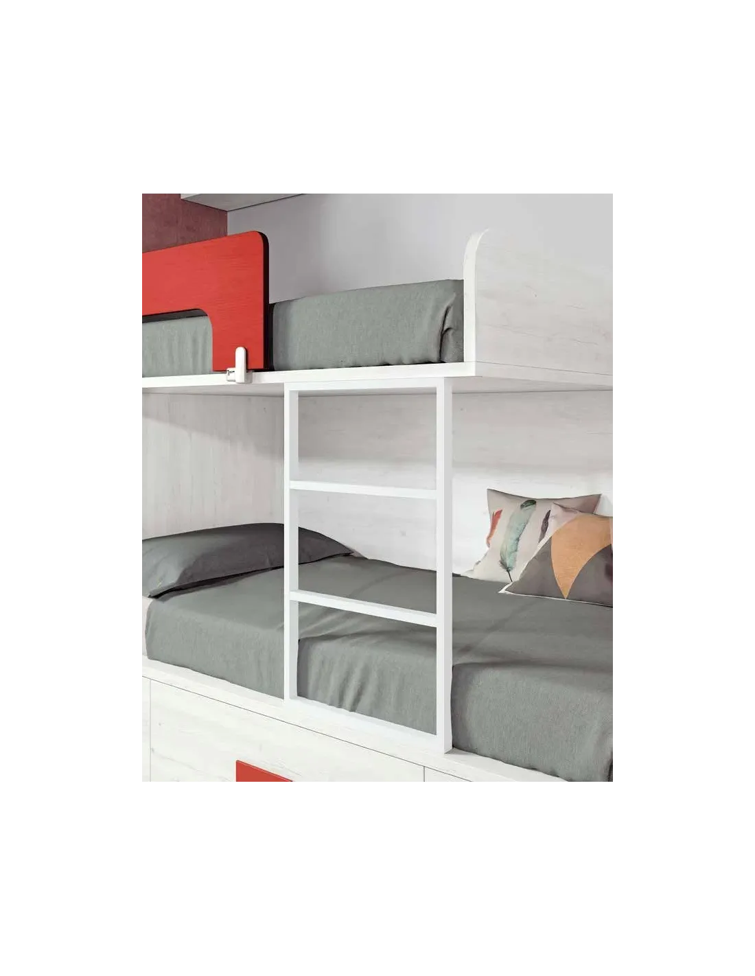 Puede cambiarse por el modelo de escalera frontal metálico, que queda situada en vertical entre las camas de litera.