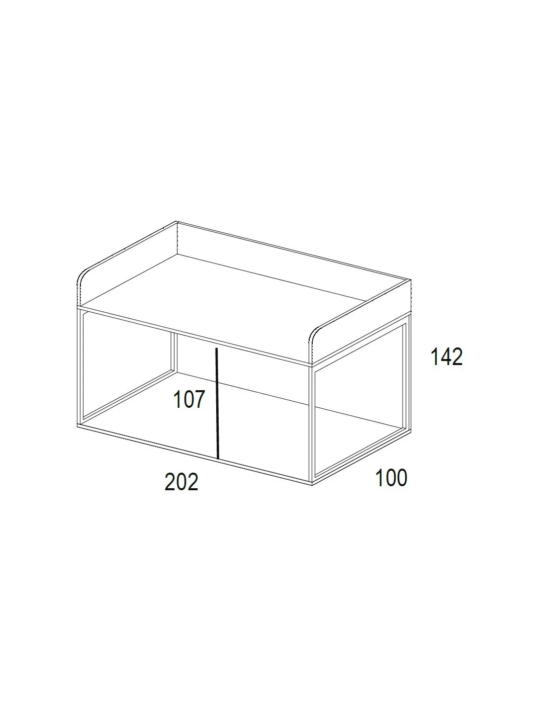 Esta litera baja con soporte metálico viene con un largo total de 202 cm. Está preparada para colchones de 90x190 cm. Cada uno de sus módulos cuentan con las siguientes medidas en largo x alto x fondo: