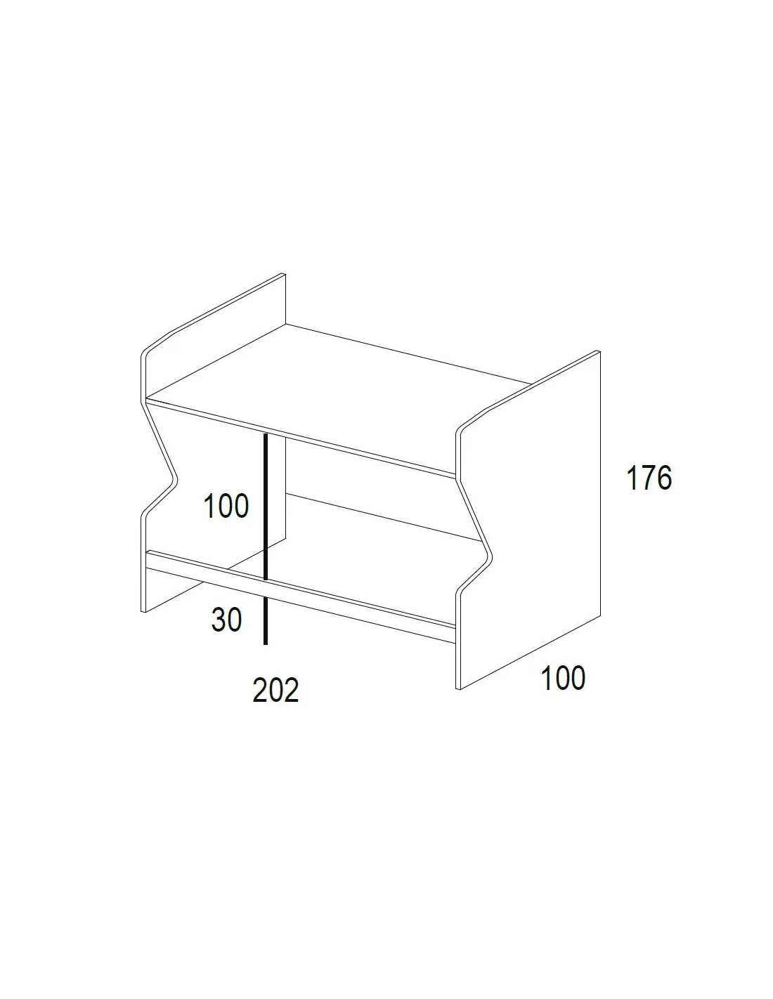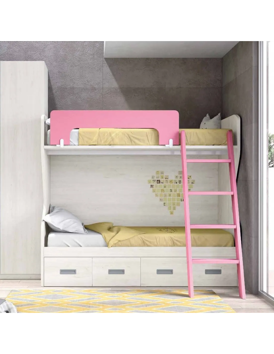 Esta litera con cajones de guía metálica viene con un largo total de 202 cm. Está preparada para colchones de 90x190 cm. Cada uno de sus módulos cuentan con las siguientes medidas en largo x alto x fondo: