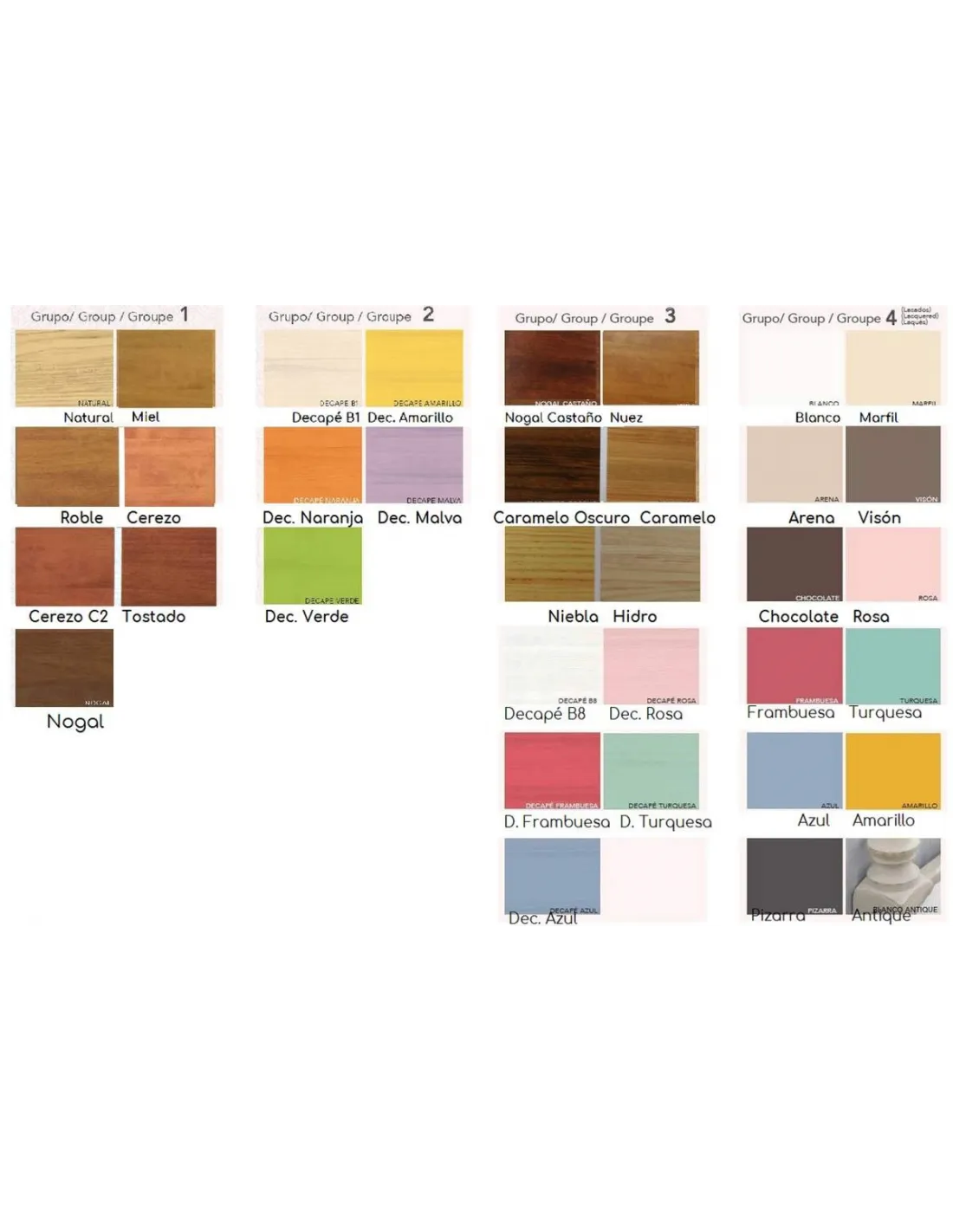 Este juego cajones para literas de madera referencia 022 se puede personalizar en base a cuatro series de colores con terminaciones barnizadas, lacadas, decapés y glaseados. Para saber el precio de la combinación escogida seleccione las opciones del grupo de color en los desplegables.