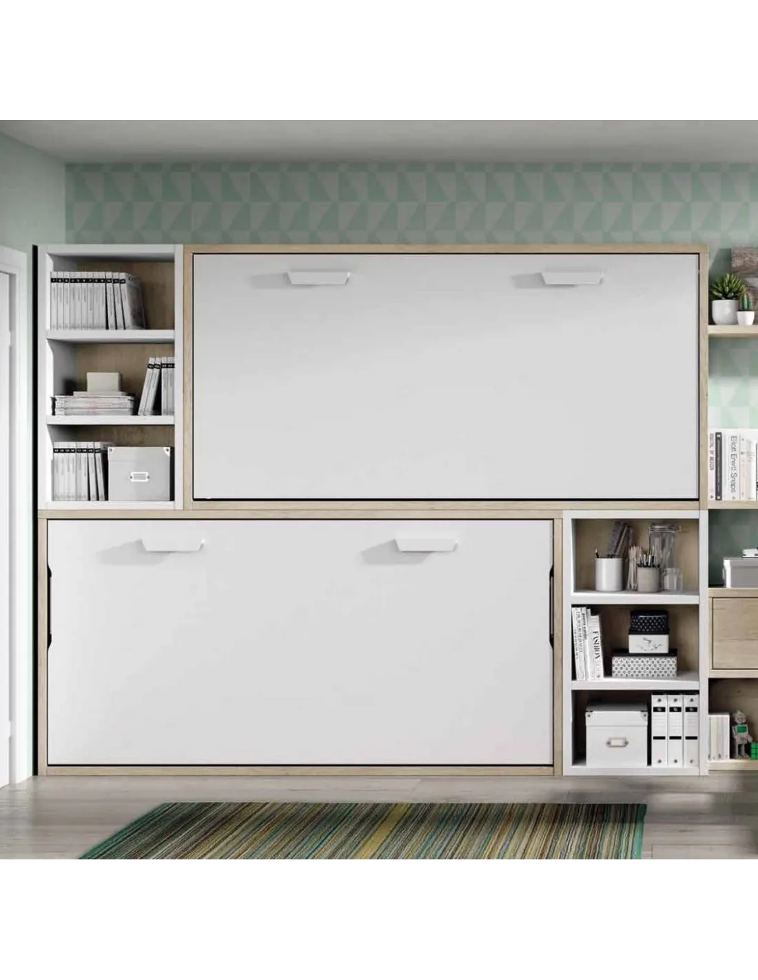 Las medidas totales de este mueble de litera dos camas abatibles con estanterías son: