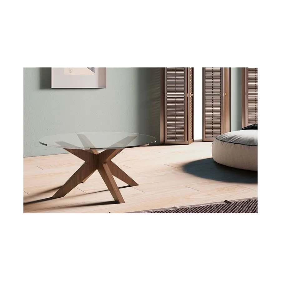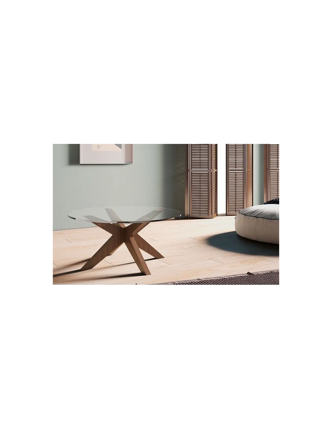 La mesa centro Roma con tapa de cristal combina su diseño moderno con la posibilidad de aplicar diversas terminaciones a la madera y al cristal.