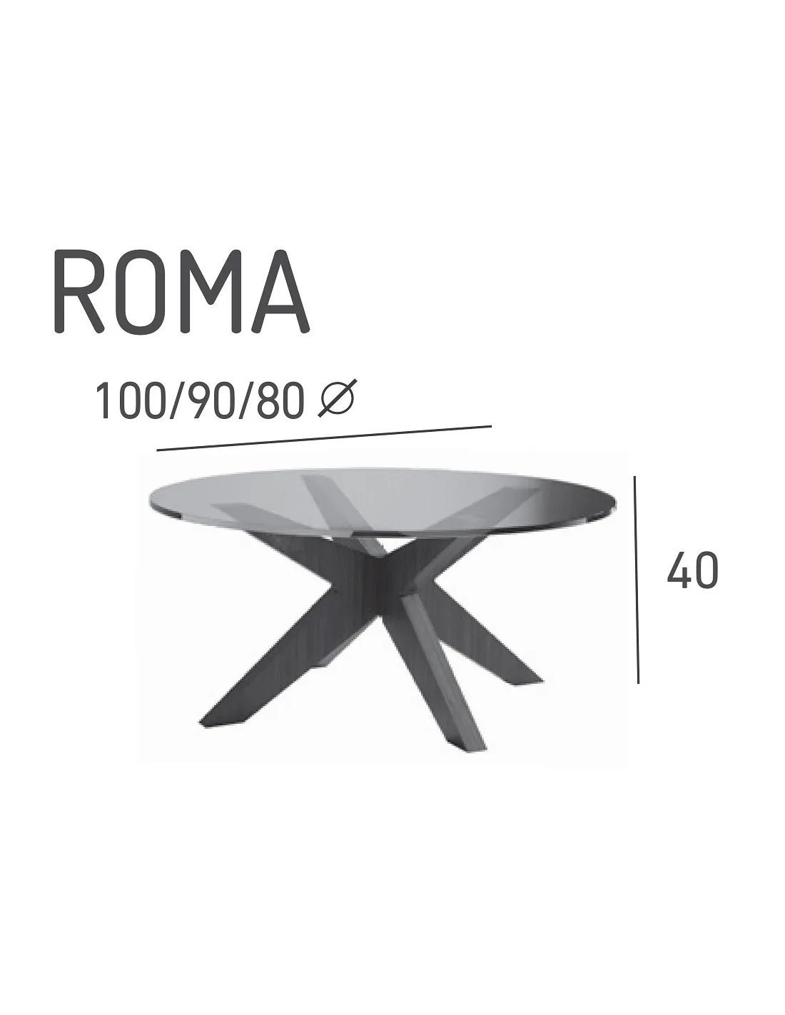 La mesa de centro Roma viene disponibles en tres medidas de diámetro: 80 / 90 / 100 cm. con una altura de 40 cm.
