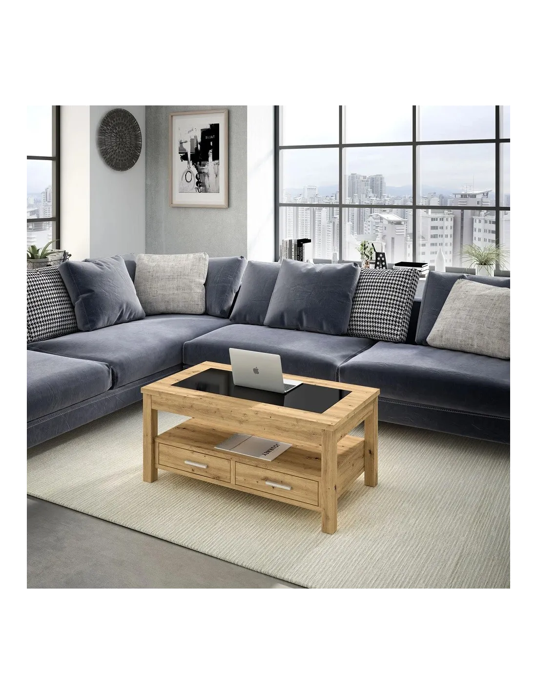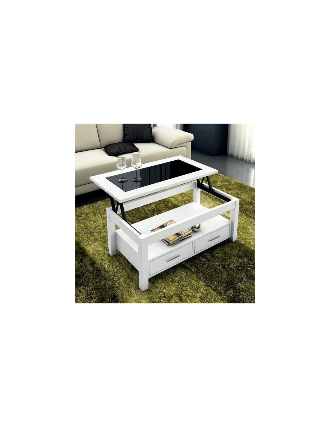 Mesa de centro con cajones fabricada en melamina de diseño moderno, elevable y con posibilidad de elegir colores y acabados