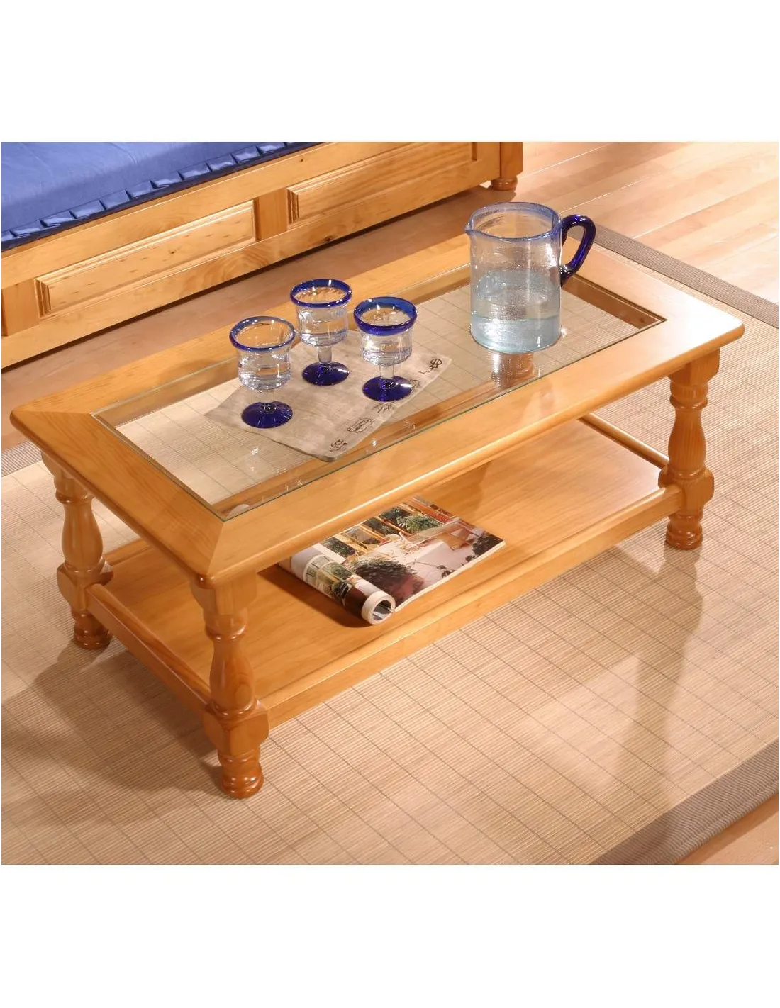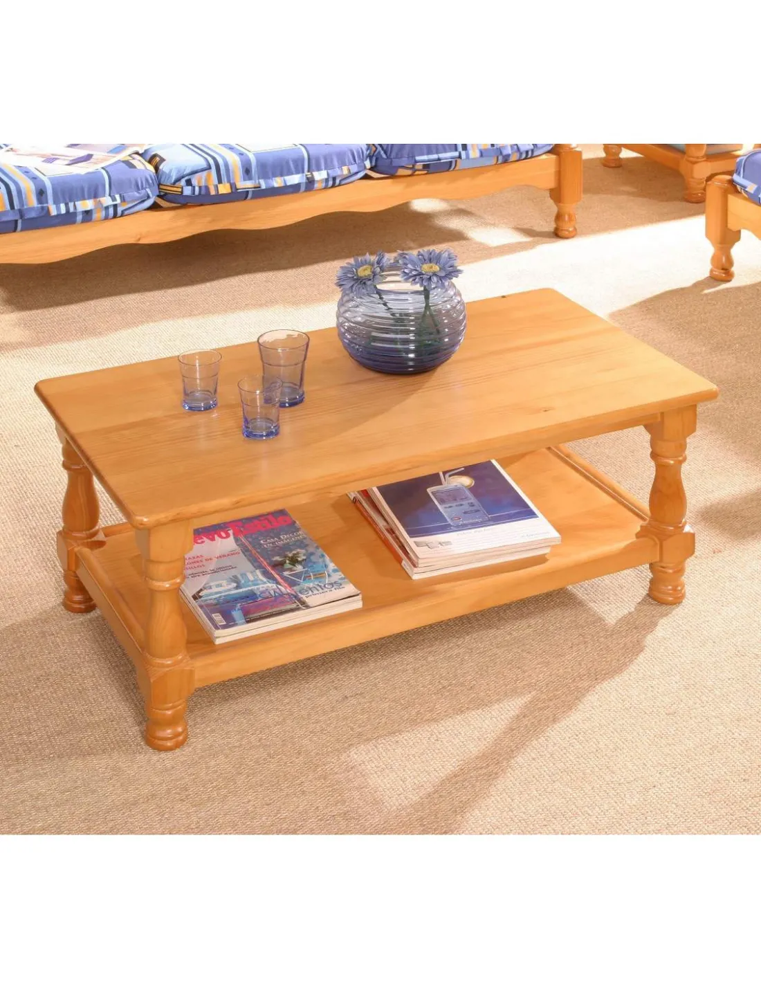 Mesa de centro rectangular de madera de pino y fabricación nacional modelo Provenza torneada