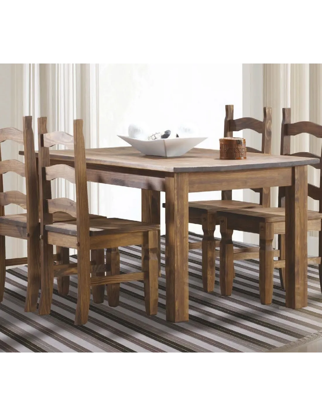 Esta mesa de comedor rústica consta de las siguientes medidas en largo x alto x fondo:
