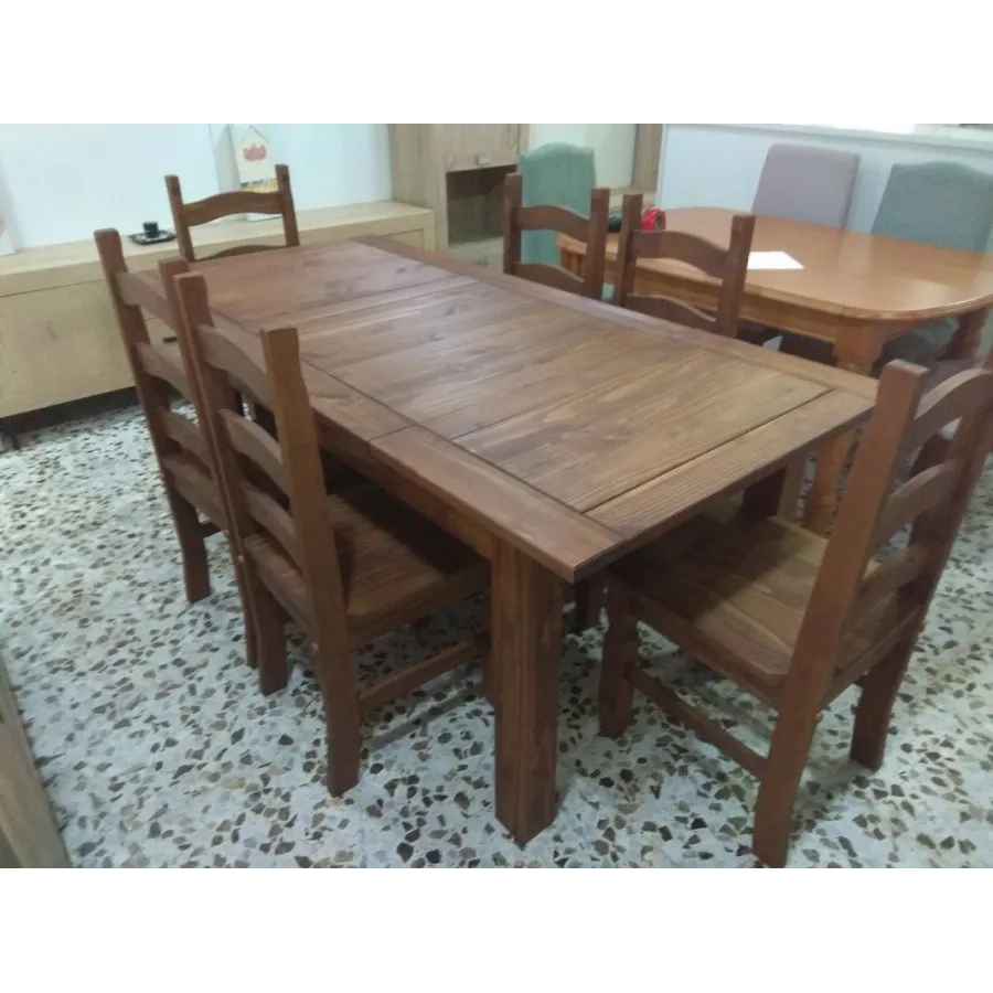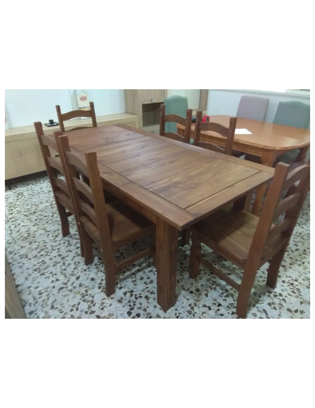 Conjunto de comedor con mesa extensible rústica madera maciza NOGAL OSCURO