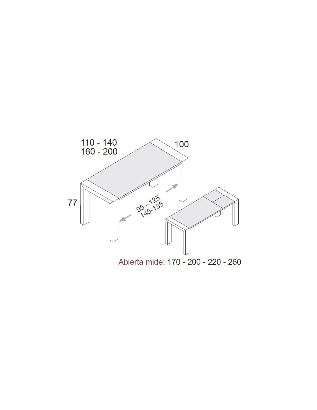 Esta mesa de comedor Carro extensible viene con las siguientes medidas (en cm.):