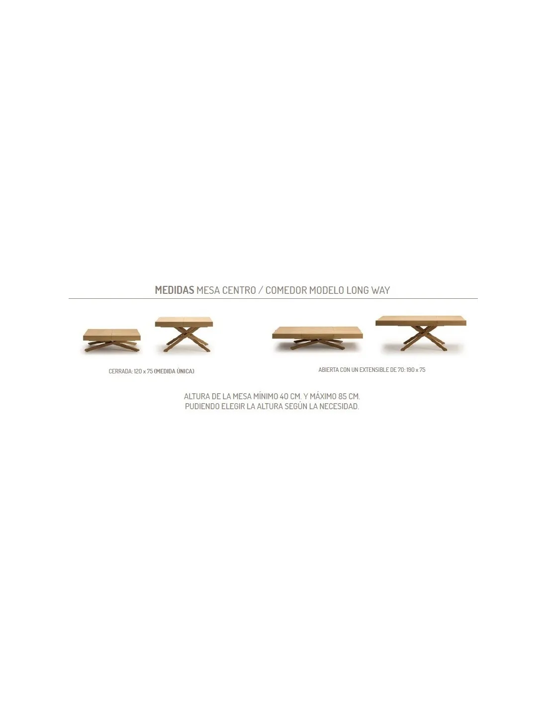 La altura de la mesa es regulable con motor, va desde los 40 a los 85 cm. y se eleva según las necesidades del momento. Esta mesa cuenta con la regulación de altura a motor con dos opciones de apertura: