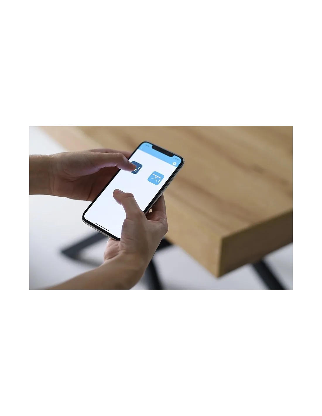 b.- Funcionamiento con cable: se acciona el motor con los botones y con la App de un dispositivo móvil, es necesario tenerla enchufada a la red ya que no tiene batería.