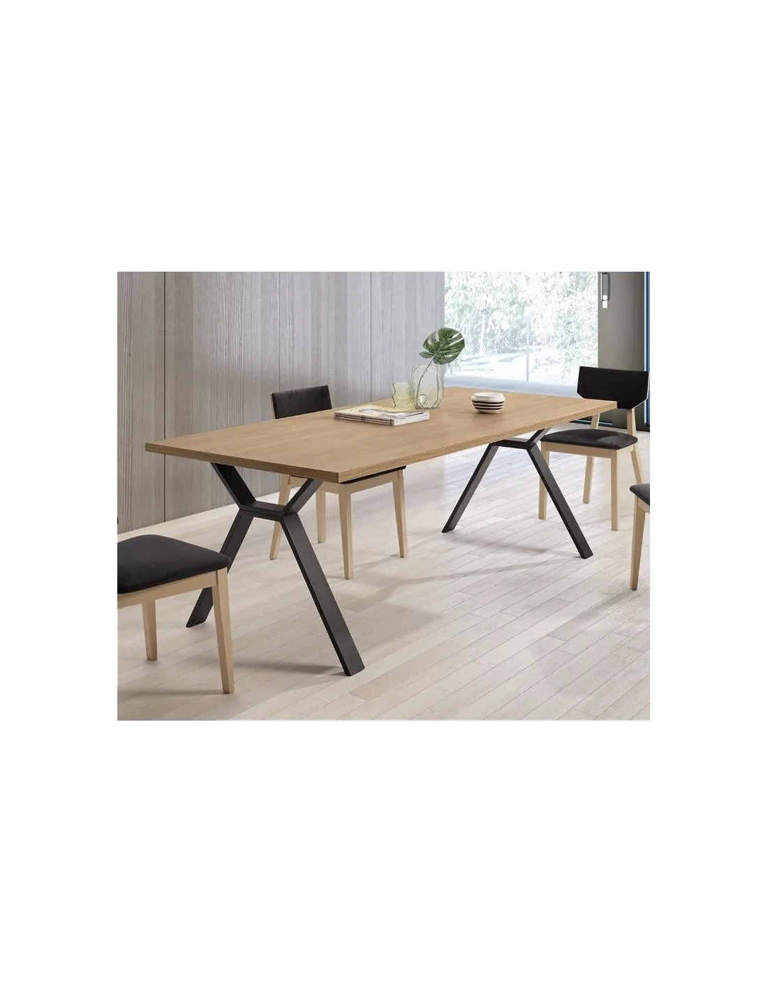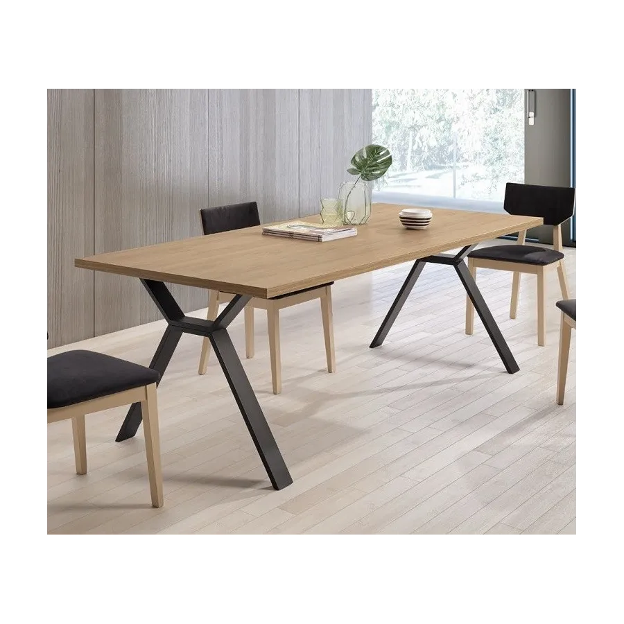 Estas mesas de gran porte se fabrican con tableros chapados de melamina de primera calidad, de fabricación nacional, y con gran variedad de acabados disponibles en chapas de melamina con y sin poro correspondientes a las principales fabricas españolas.