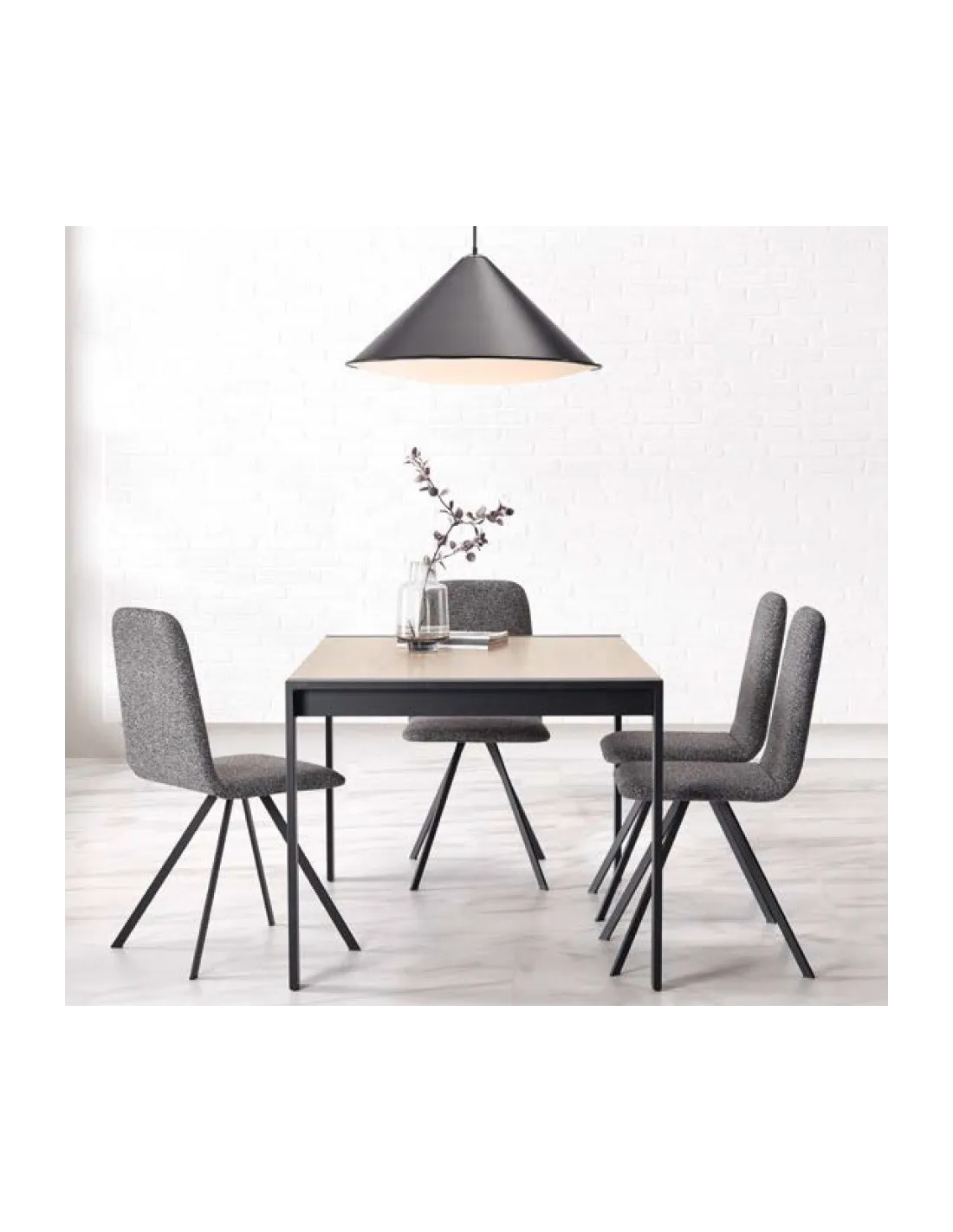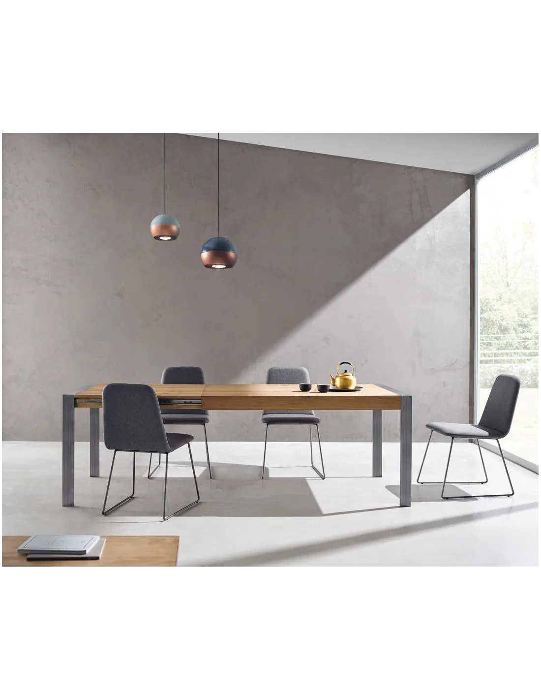 La mesa Tema con mecanismo extensible cuenta con varias medidas de largo que aumentan 60 cm. gracias a su mecanismo extensible de carro, donde sus resistentes patas metálicas se deslizan sobre el suelo quedando situadas en los extremos de la mesa.