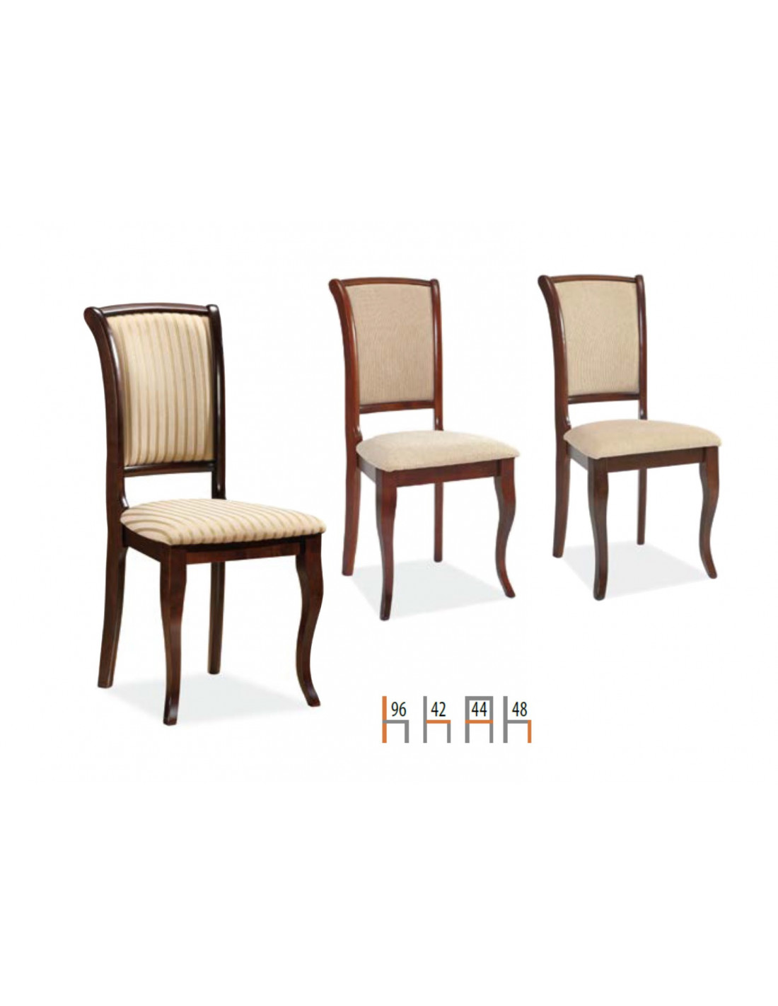 La gama de sillas tapizadas como las que aparecen en las imágenes, están disponibles en tres tapizados.