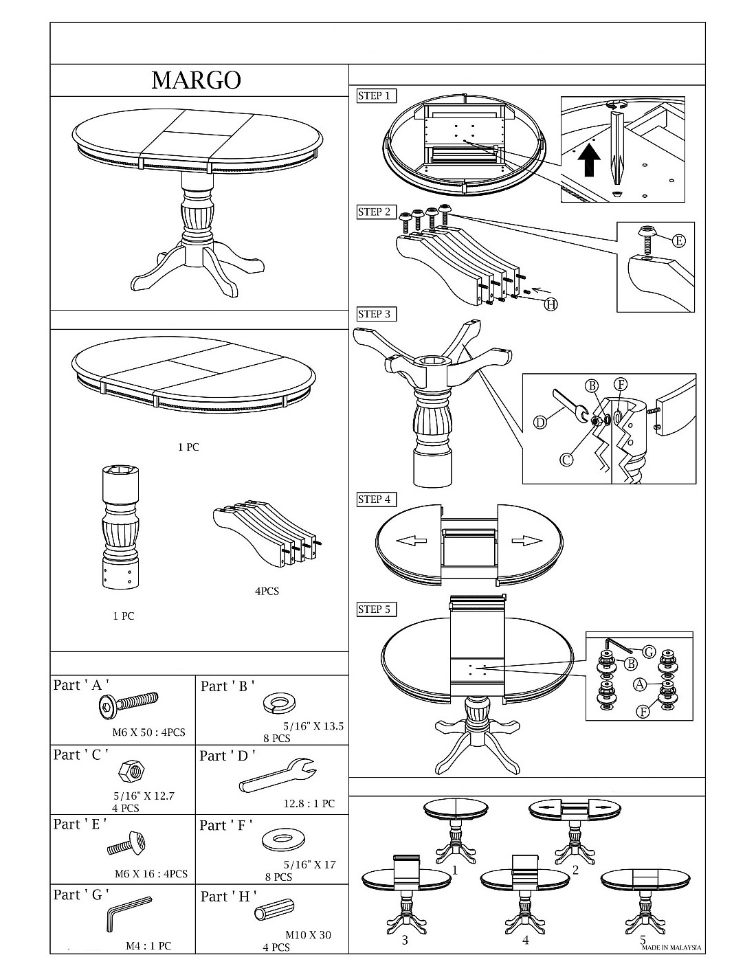 Esta mesa comedor redonda 90 extensible tiene las siguientes medidas totales: