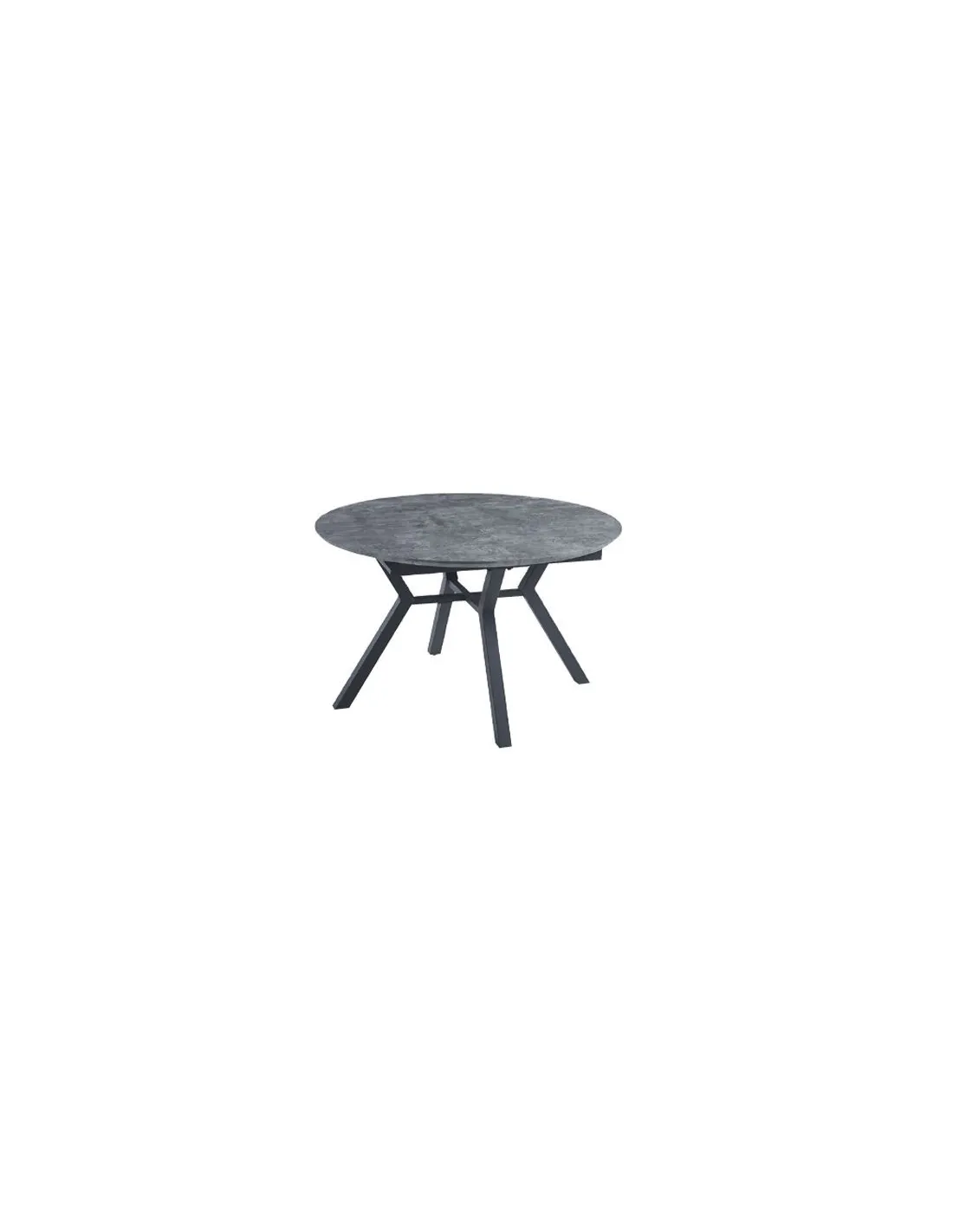 Esta mesa melamina redonda Linda extensible cuenta con la estructura metálica sobre la que se dispone la tapa de melamina con dos acabados disponibles: cemento o roble.