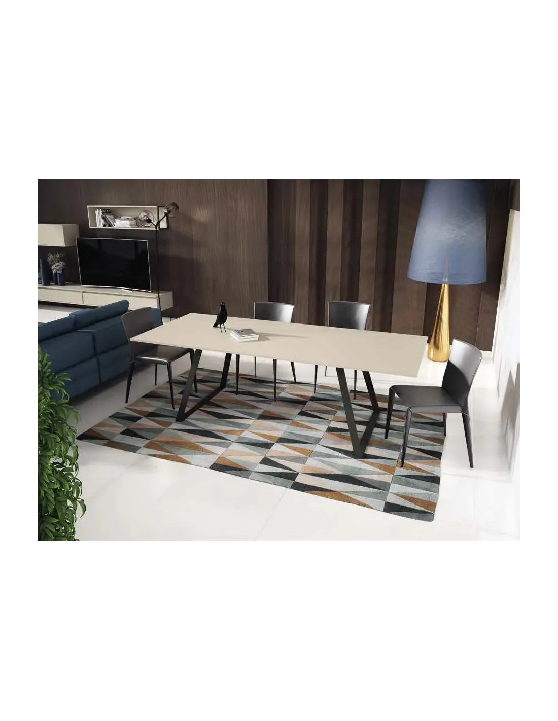 Esta mesa de comedor extensible Iconic metal viene con un largo total de 140 cm. extensibles hasta los 200 cm.