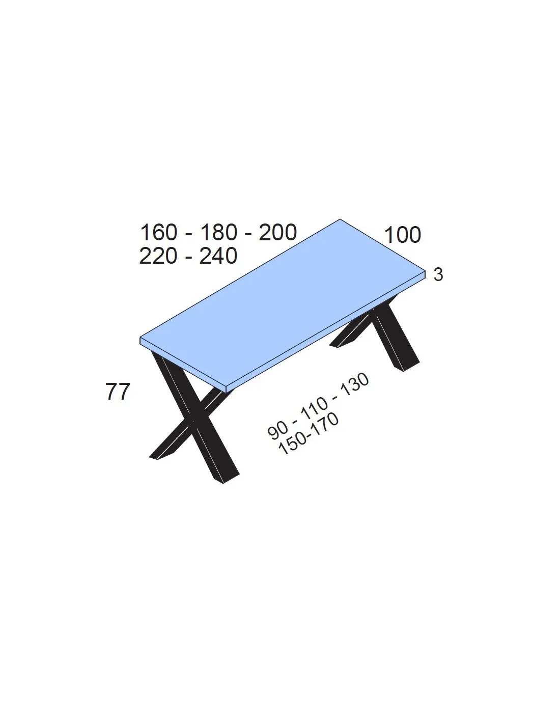 Esta mesa de comedor Cruceta fija viene con las siguientes medidas (en cm.):