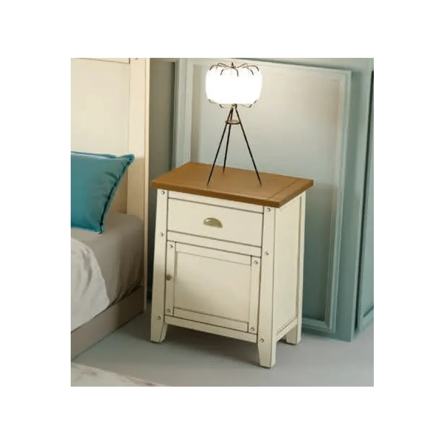Mesita de noche de estilo rústico auténtico disponible en varios acabados y 2 modelos: tres cajones o una puerta con un cajón