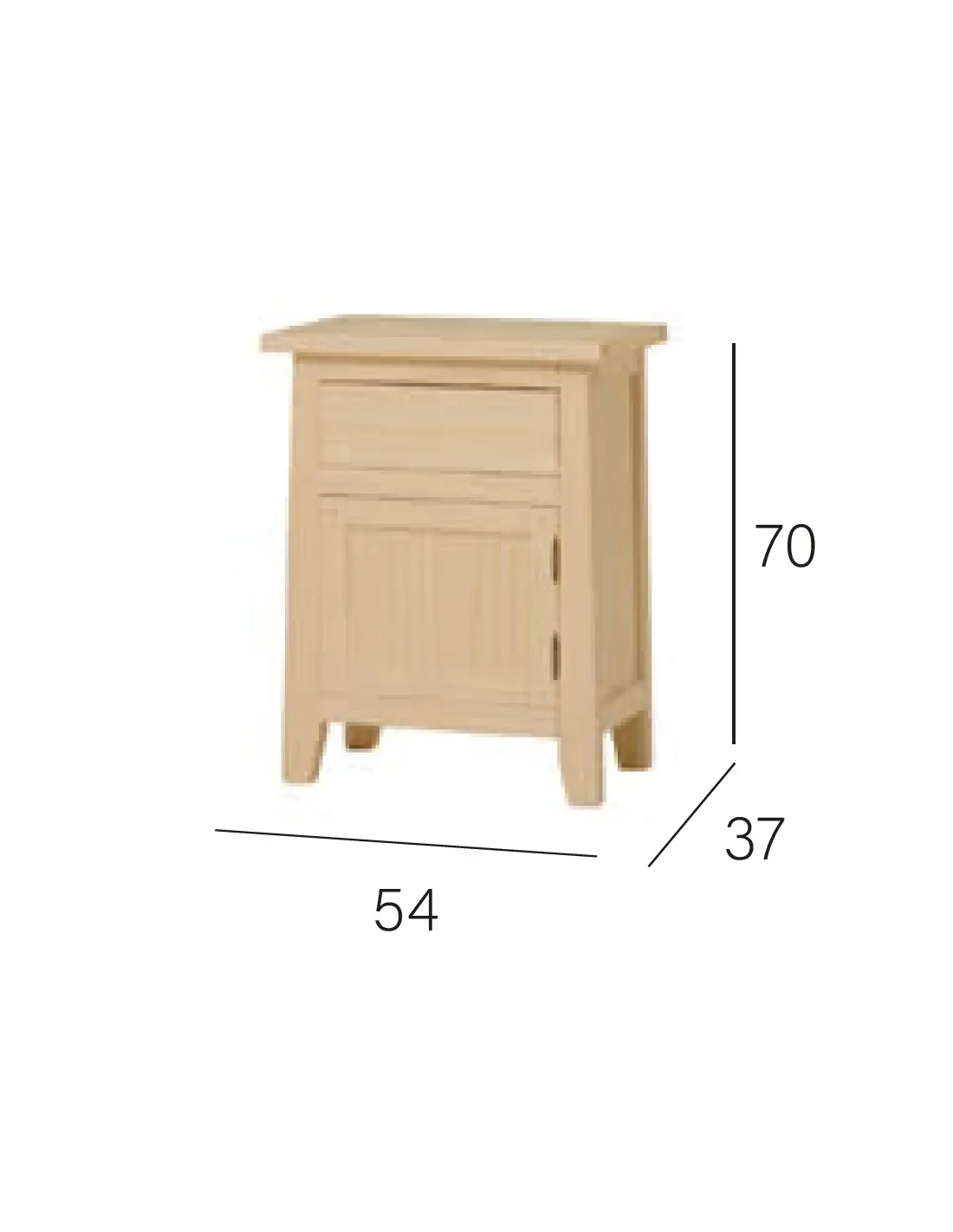 - Mesitas de noche puerta y cajón: con 54 cm. de largo, 70 de alto y 37 cm. de fondo.