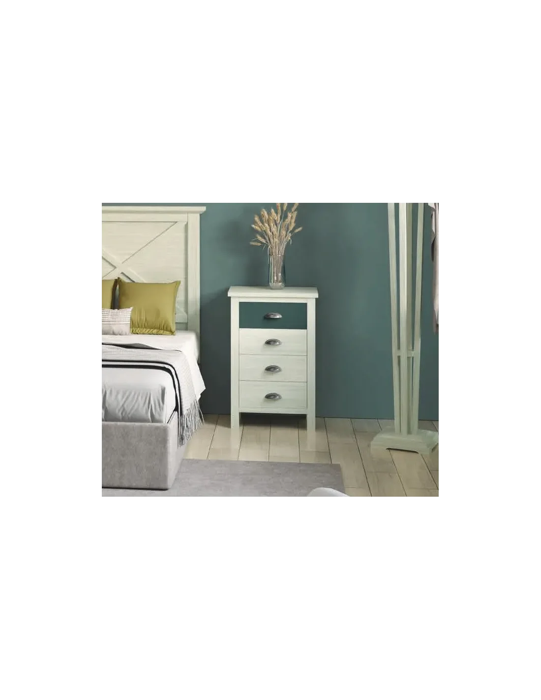 Mesita de noche colonial con 4 cajones fabricada en madera con dos medidas disponibles