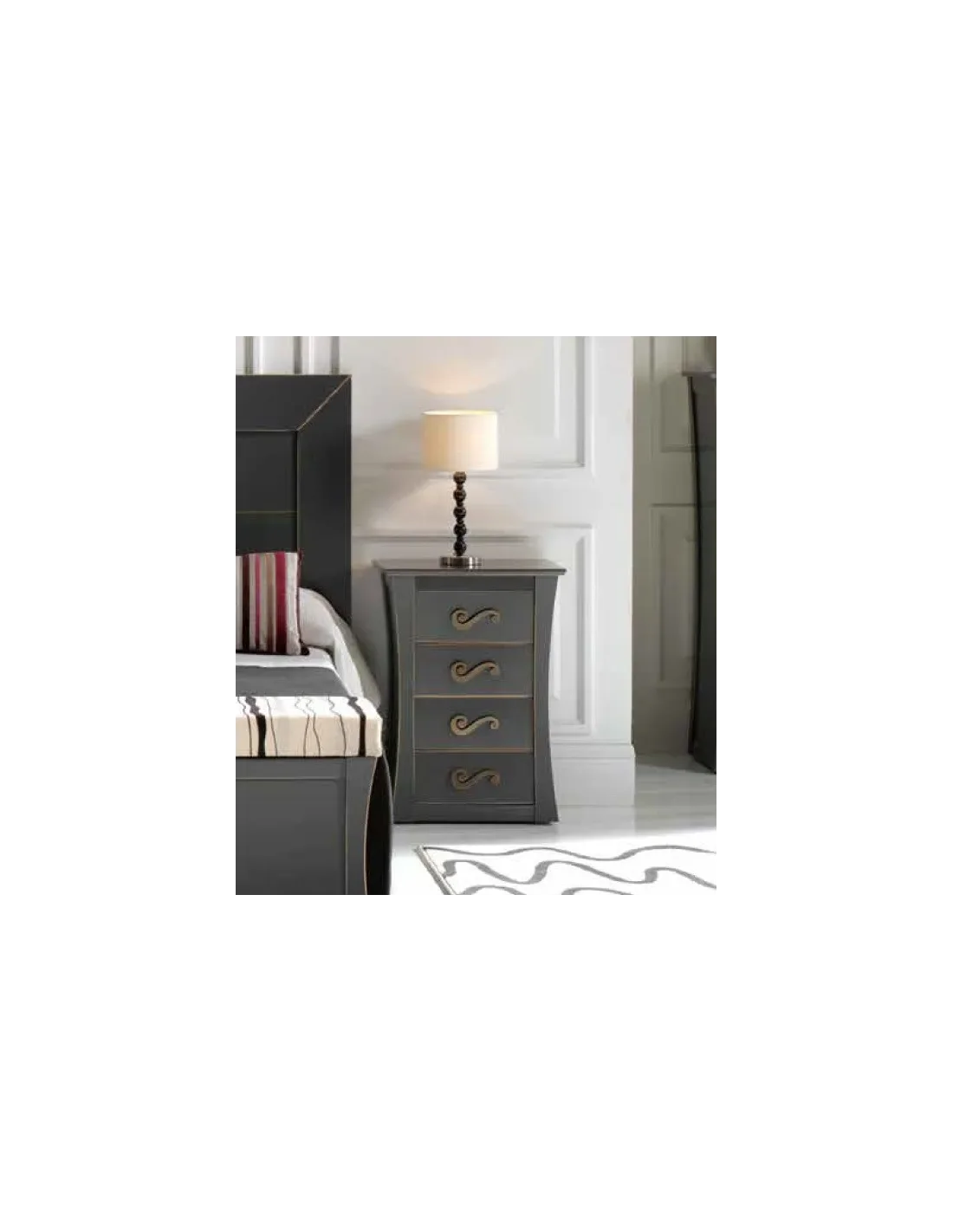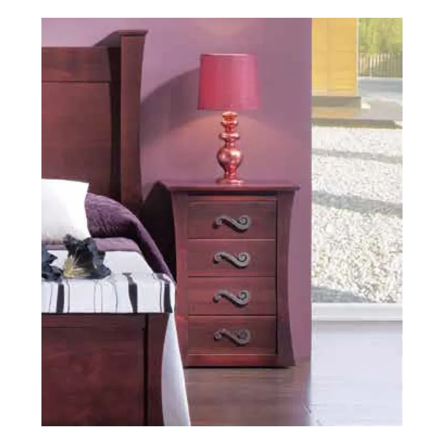 Mesita de noche hecha en madera con diferentes acabados disponibles. Mueble con diseño de lineas curvas e inspiración clásica con aires renovados, una mesita con personalidad y estilo.
