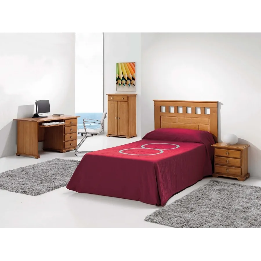 Colección de muebles de dormitorio juvenil colonial en madera maciza de fabricación nacional. Estos muebles de dormitorio destacan por sus materiales, empleando madera maciza de pino de primera calidad, con costados macizos e interiores de cajones incluidos, y la calidad de sus acabados, barnizado, lacados y decapados terminados al detalle.