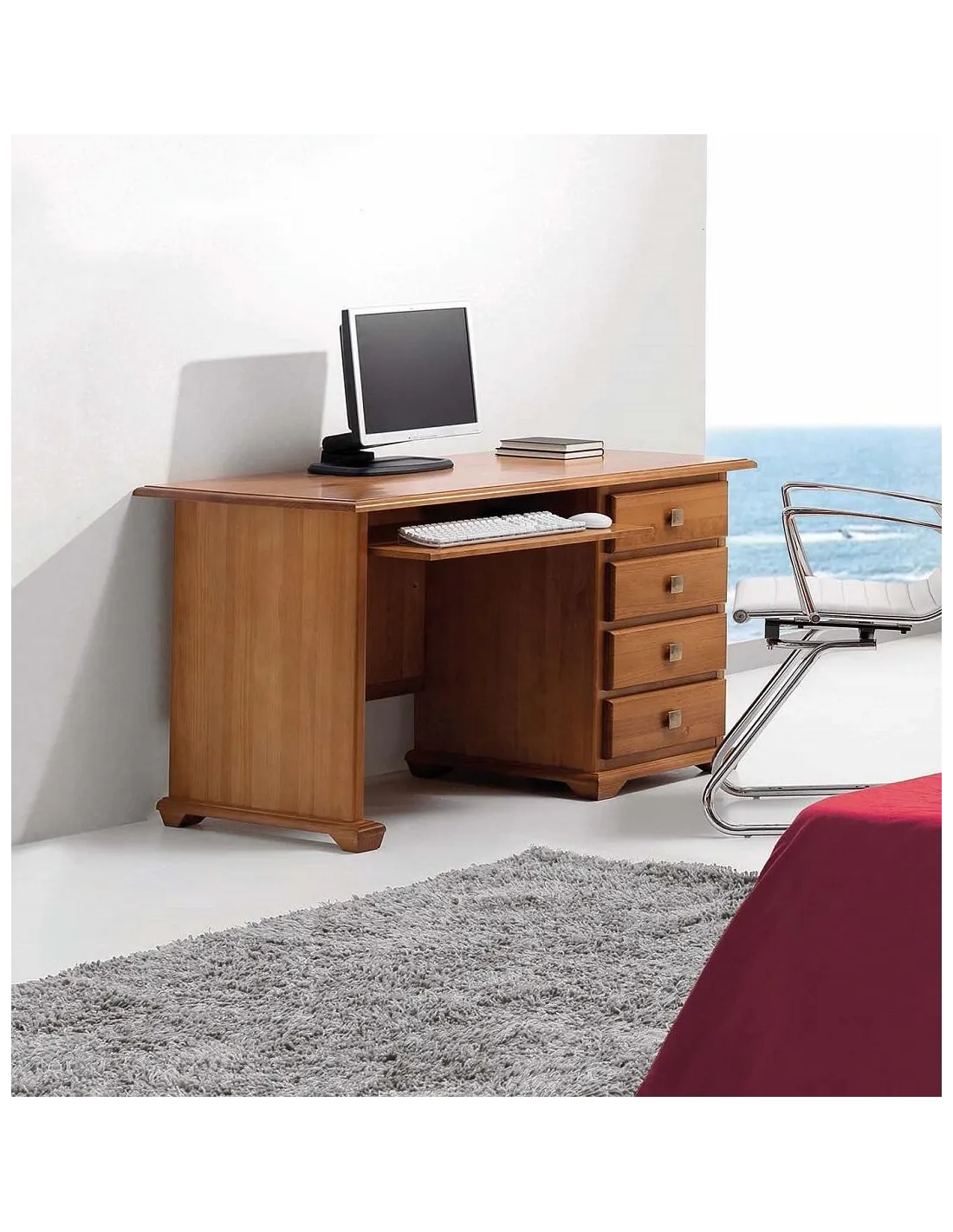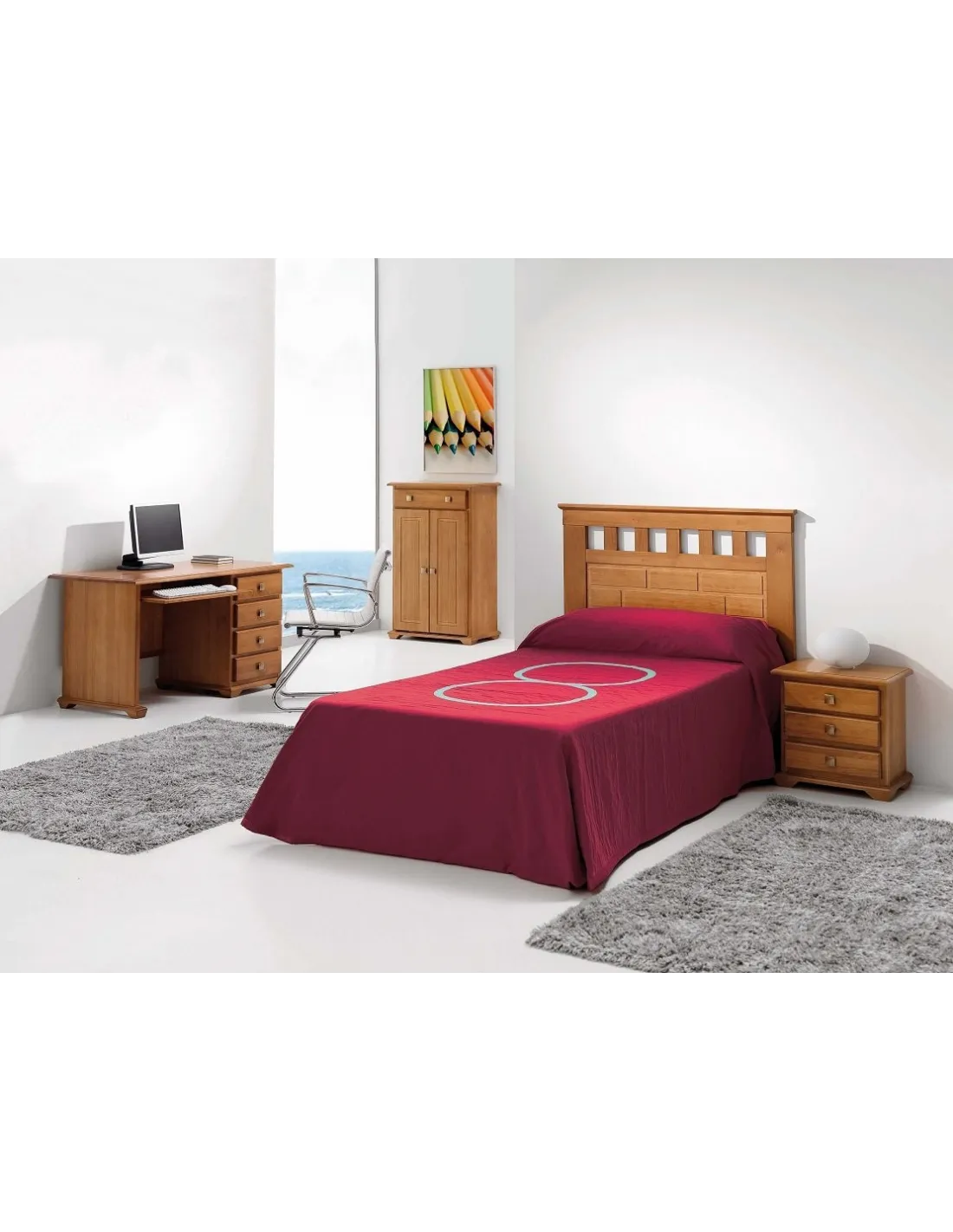 Dormitorio juvenil completo de diseño rústico - colonial fabricado en madera maciza de pino con escritorio