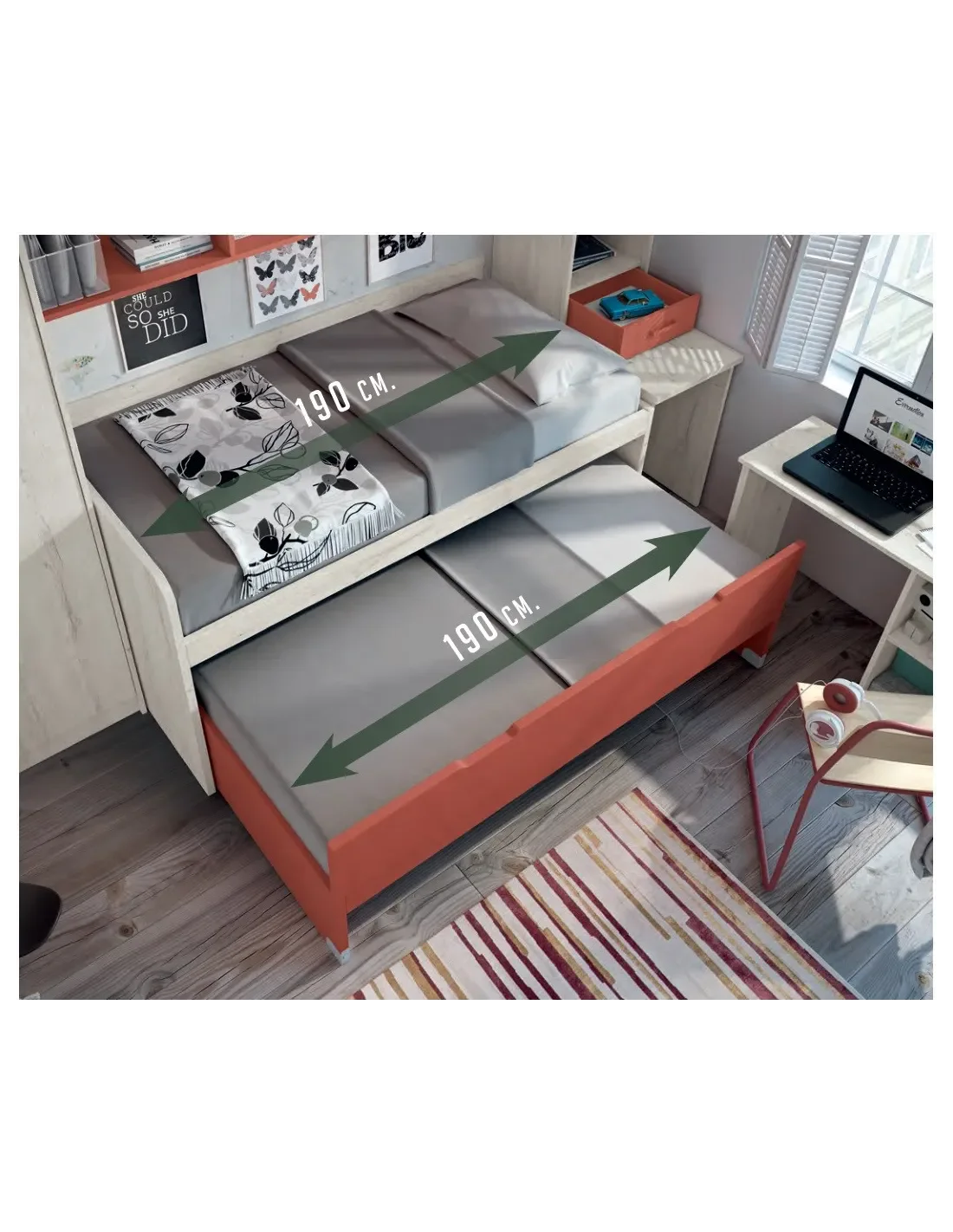 - necesita somier superior e inferior 90x190 cm.